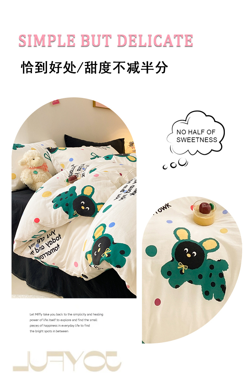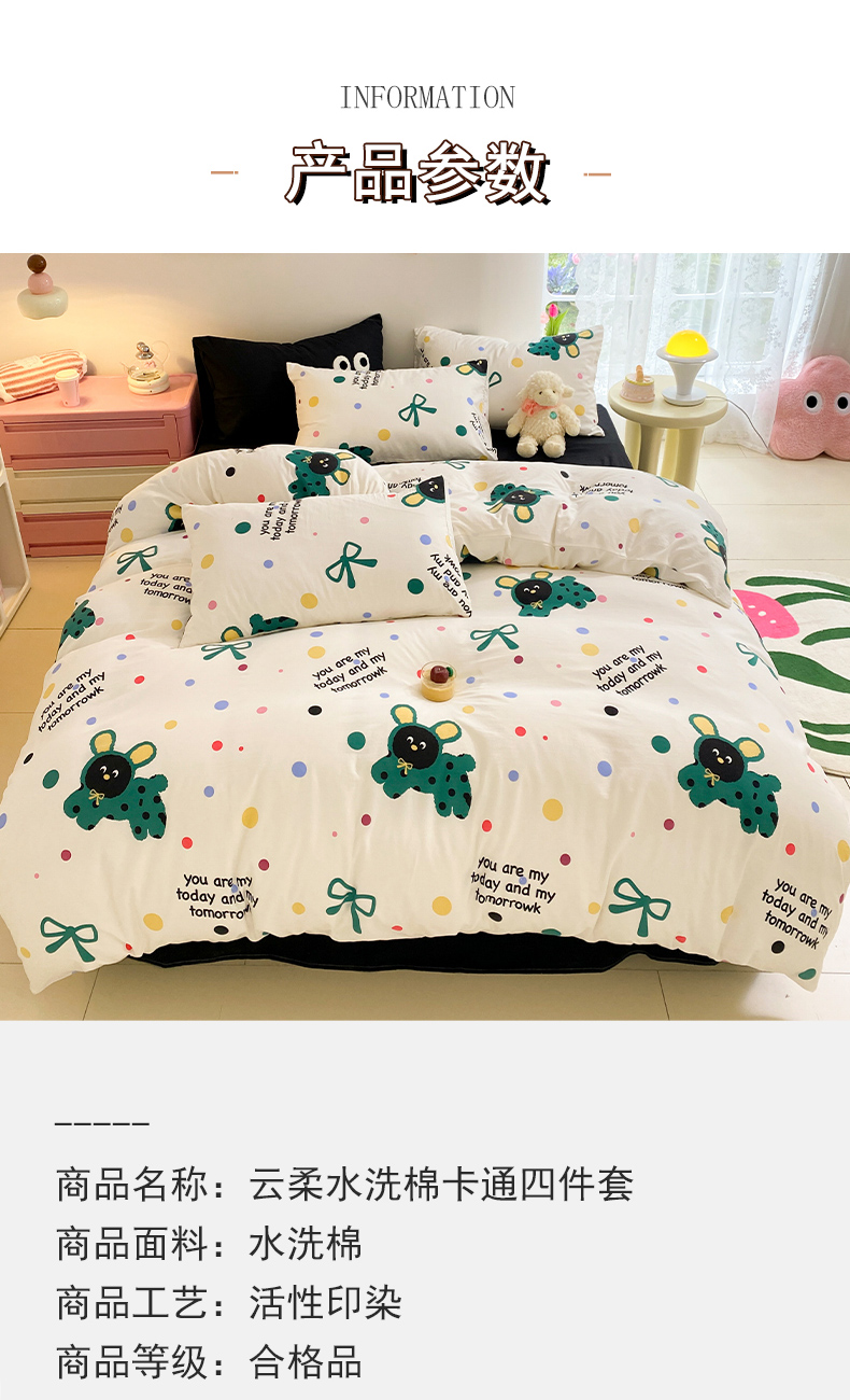 当前位置: 91家纺网 > 商品网购 > 床品套件 > 四件套 > 水洗棉四件套 > 葡萄家 2024新款双层纱云柔水洗棉萌趣卡通系列四件套(提供买家秀联系客服) 欢乐皮皮