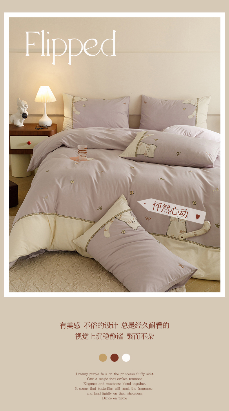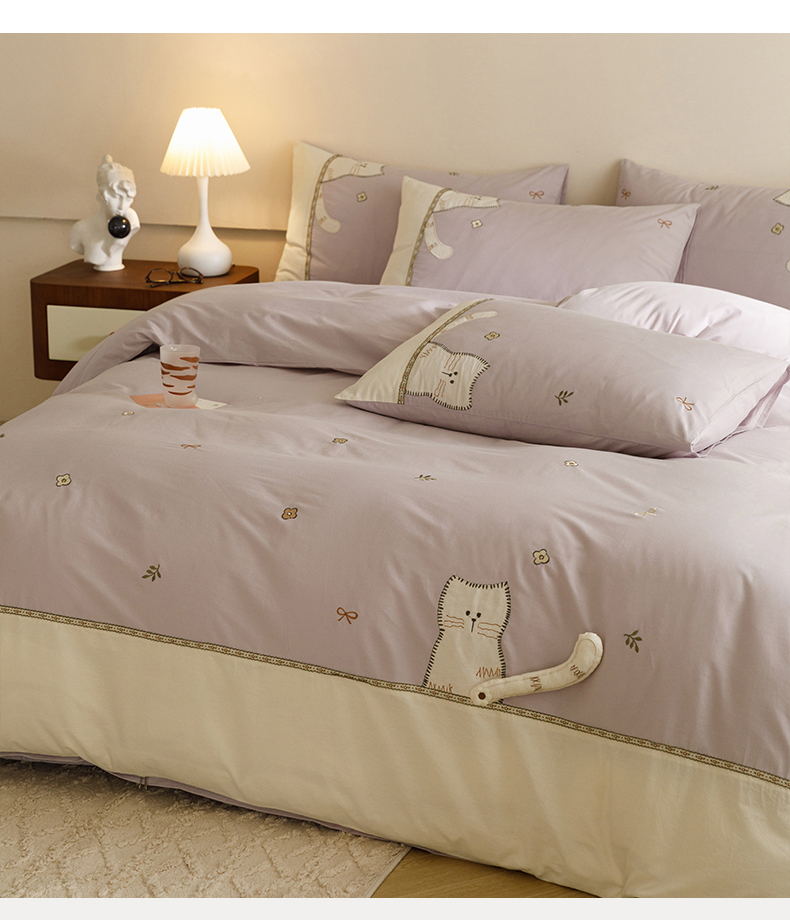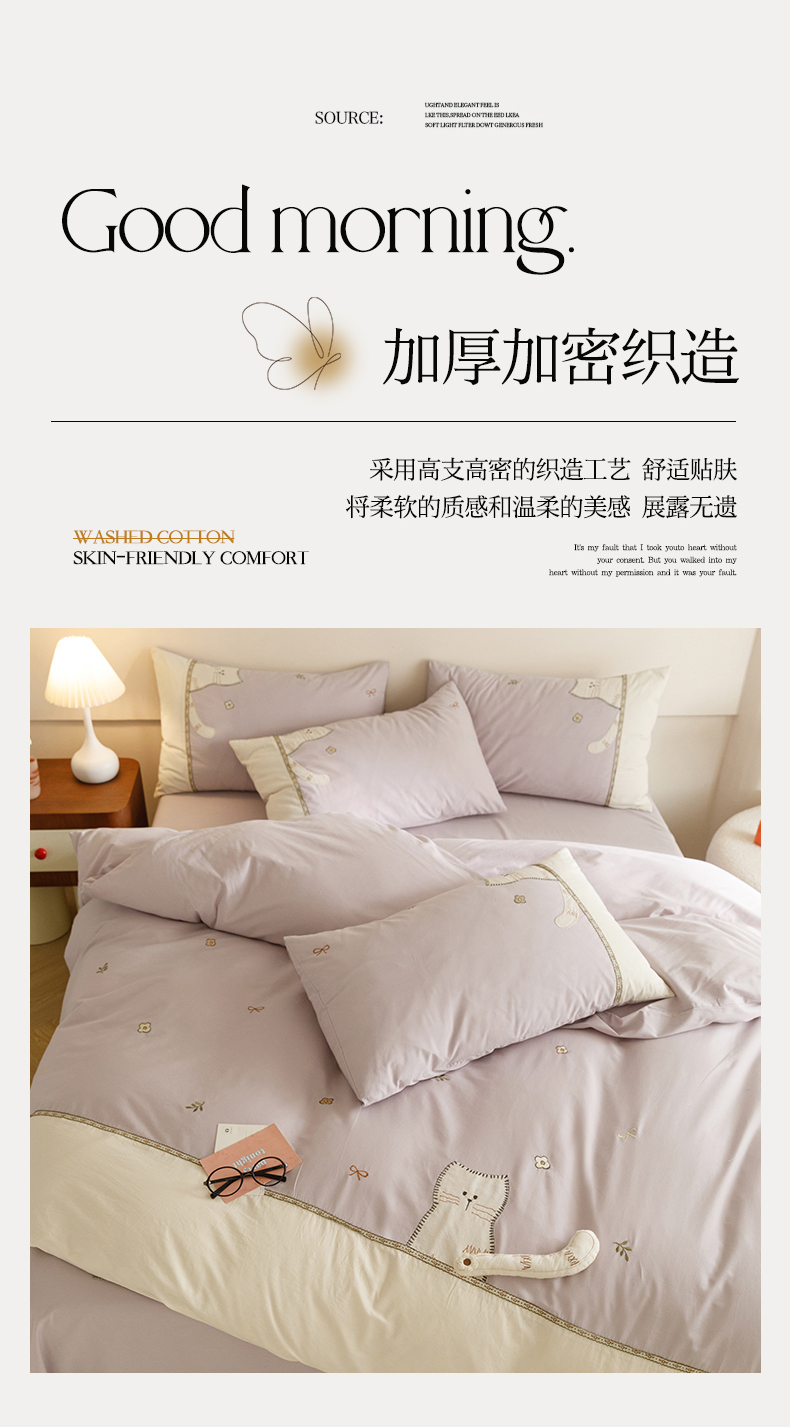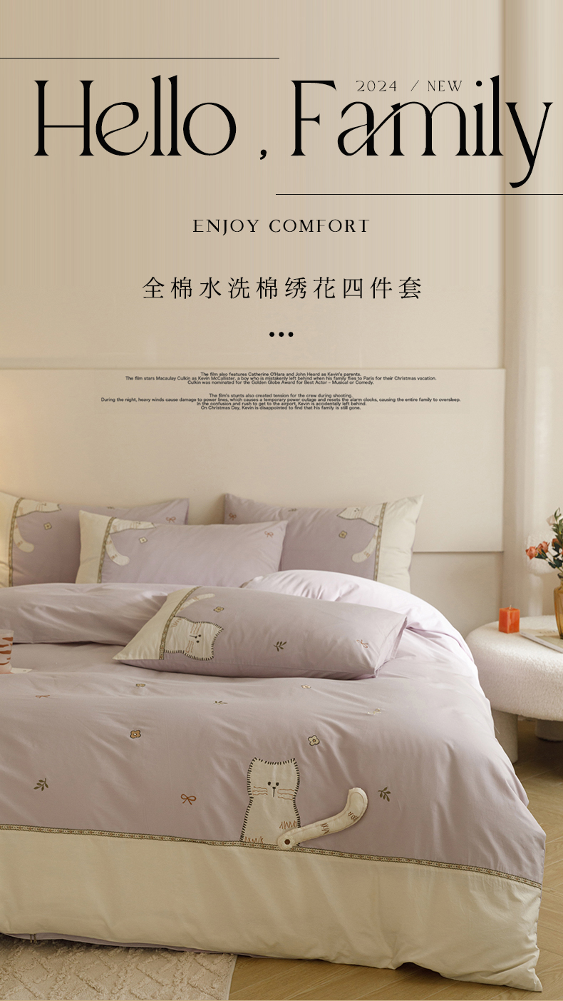 艾莱家纺 2024新款水洗棉加厚绣花四件套 紫色cat