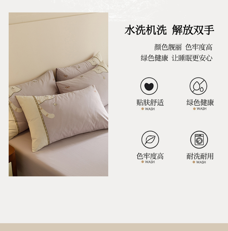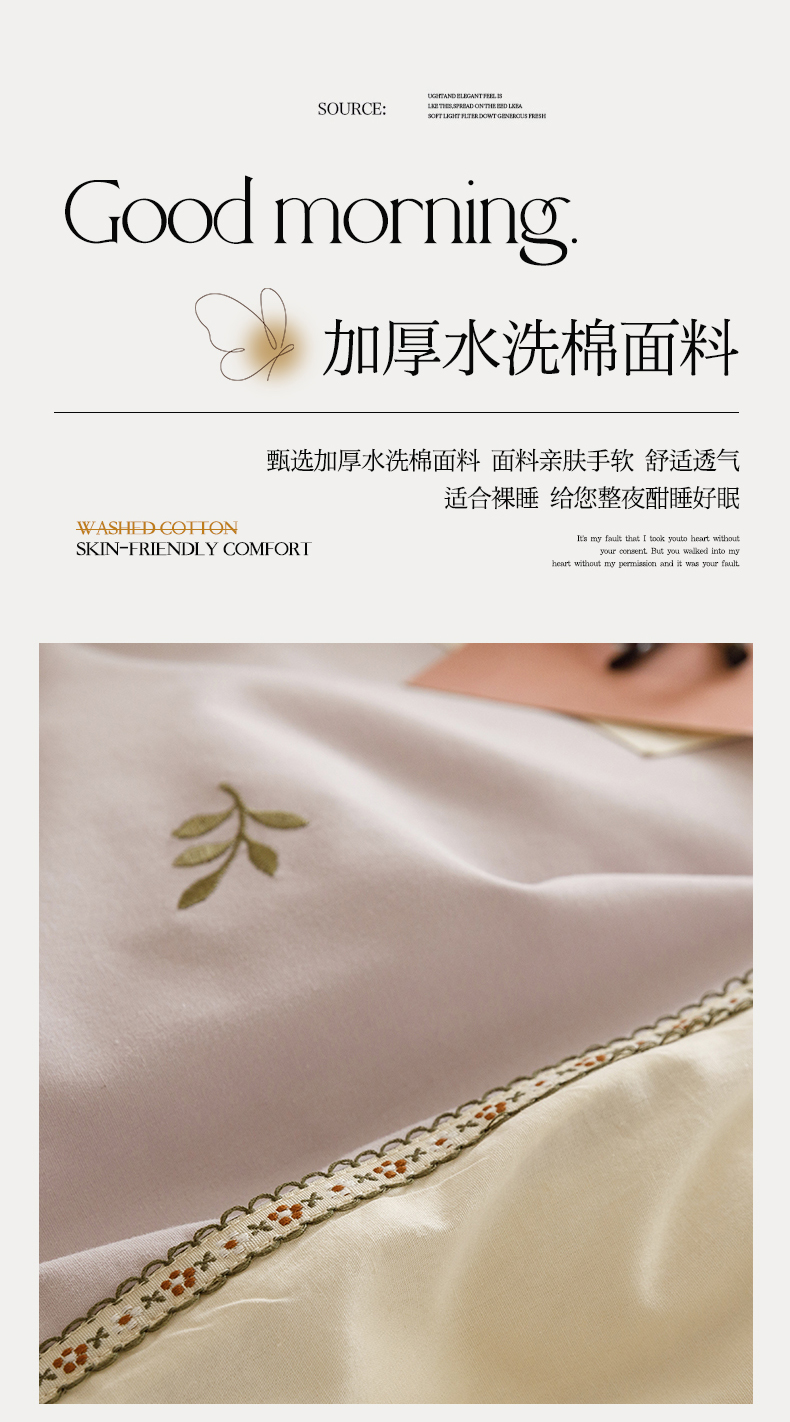 (总)艾莱家纺 2025新款A类水洗棉加厚绣花四件套-栀夏,栀夏-草莓奶粉,栀夏-格林棕,栀夏-暮光绿,栀夏-青叶紫,栀夏-银蓝