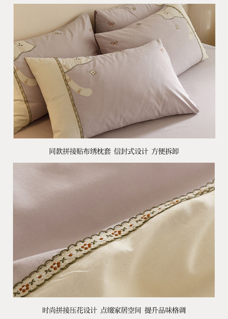 (总)艾莱家纺 2025新款A类新疆长绒棉纯棉加厚柔顺磨毛贴布绣四件套-奶芙,奶芙-锦绣绿,奶芙-大麦灰,奶芙-可可蛋奶,奶芙-悠兰,奶芙-紫粉
