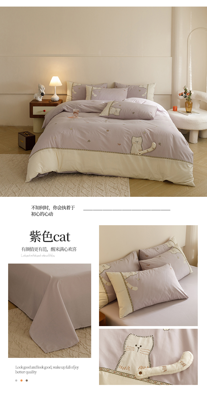 商品名称:艾莱家纺 2024新款水洗棉加厚绣花四件套 紫色cat
