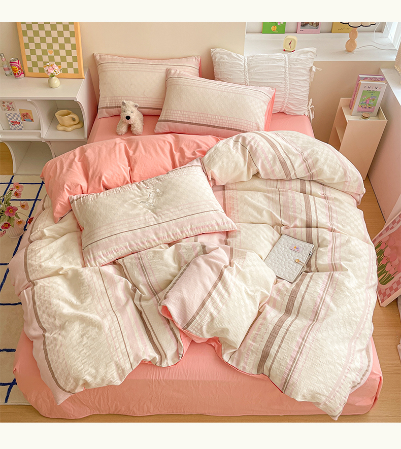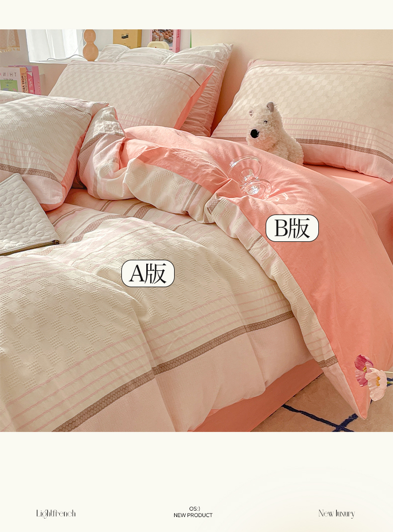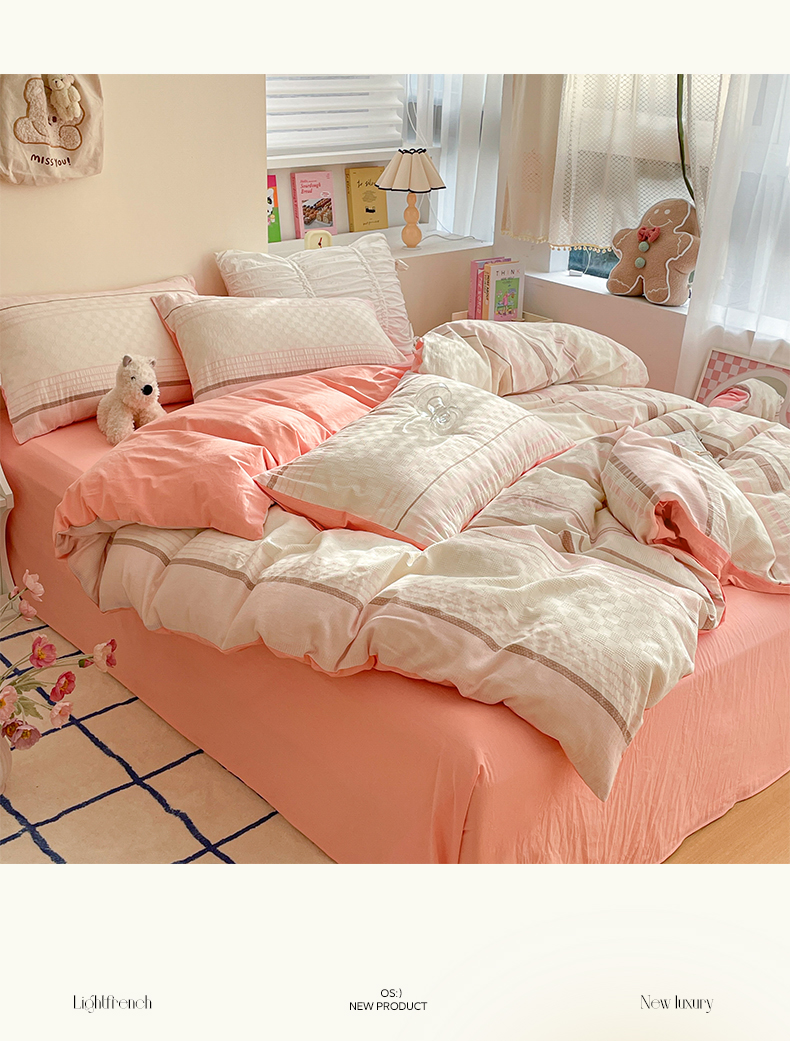 雅居纺家纺 2024新款全棉华夫格提花四件套-简希 简希-粉