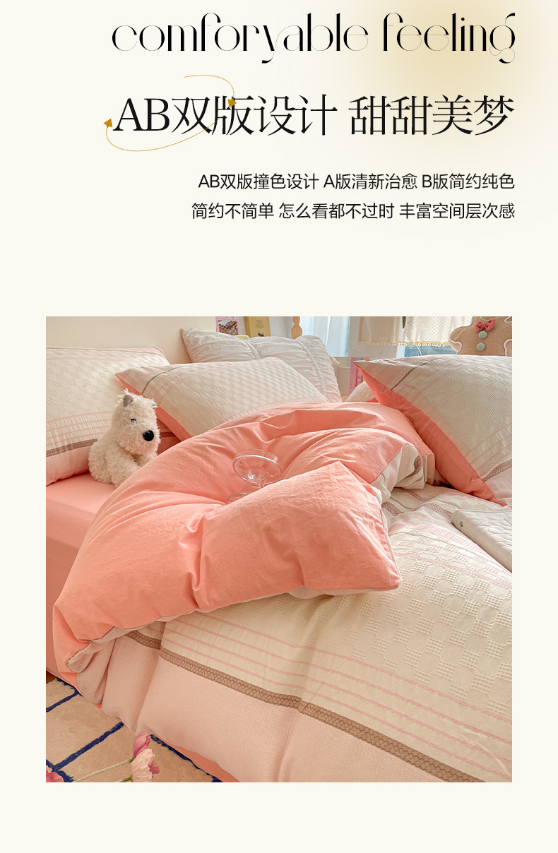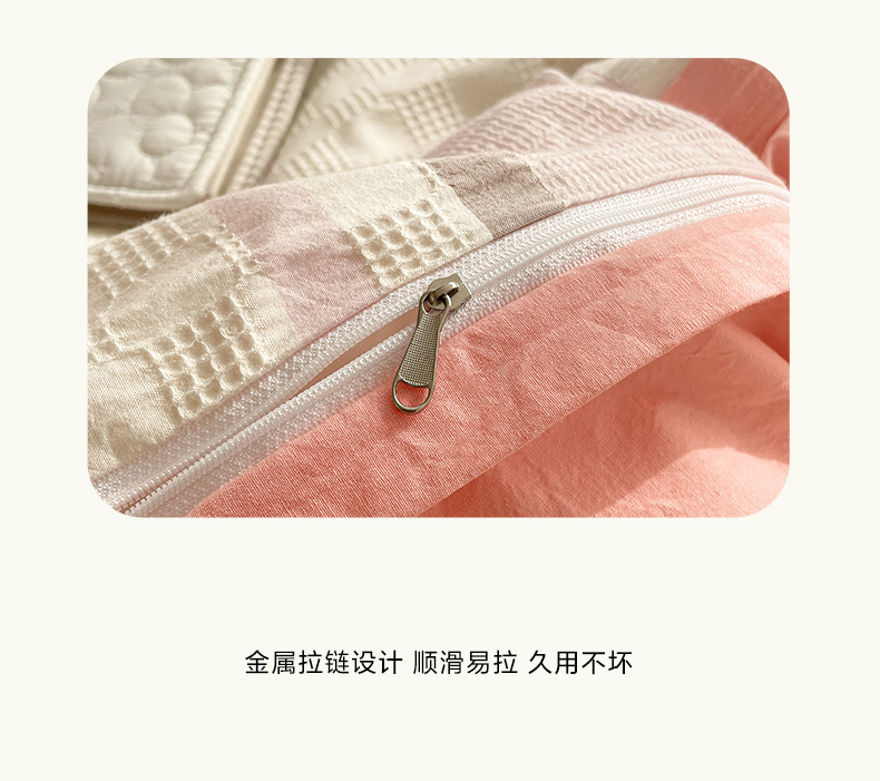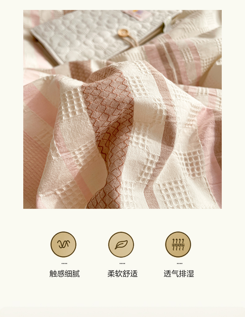 商品名称:雅居纺家纺 2024新款全棉华夫格提花四件套-简希 简希-粉