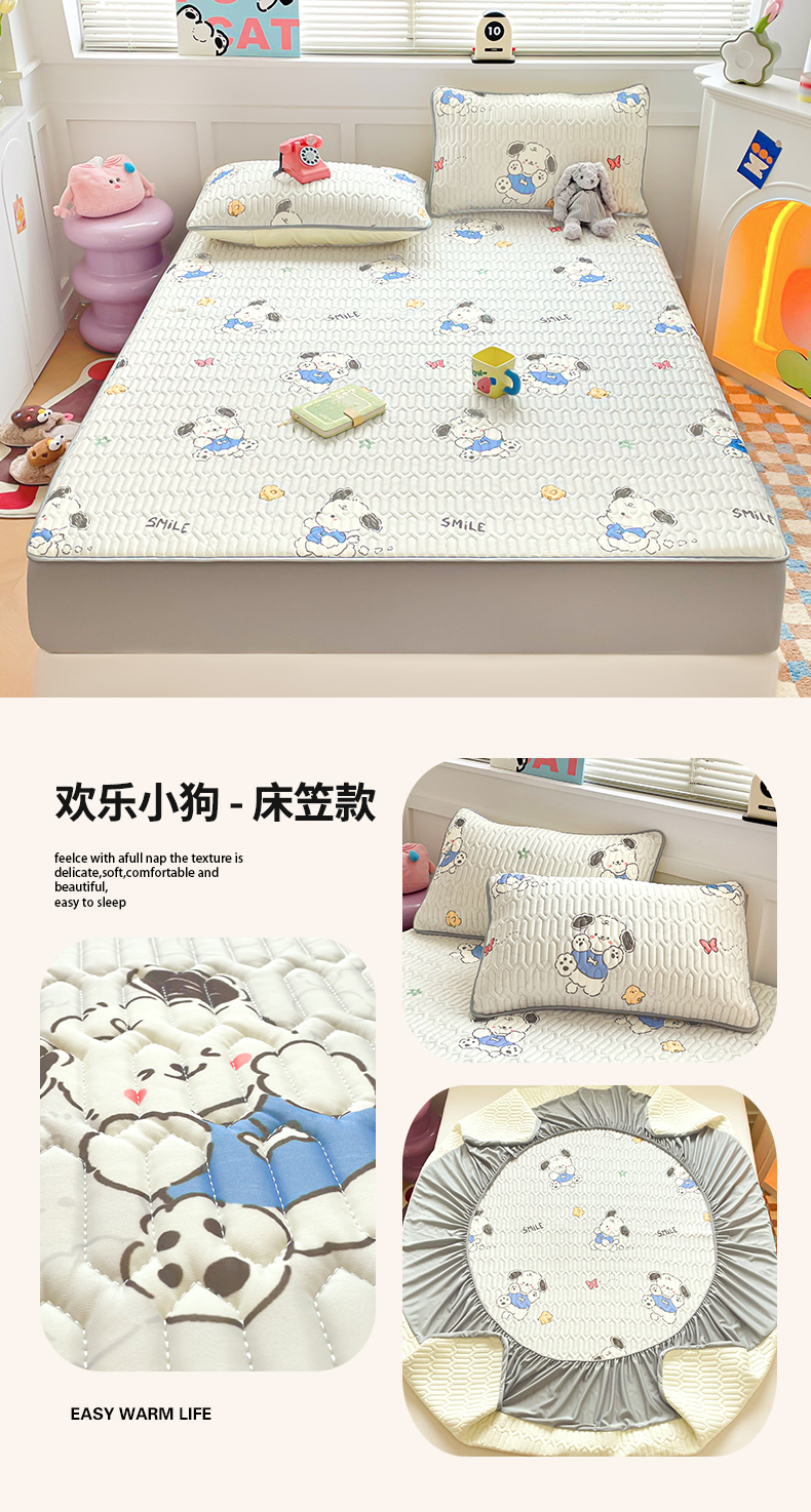 商品名称:米帛家纺 2024新款A类凉感丝卡通乳胶凉席-床笠款 欢乐小狗