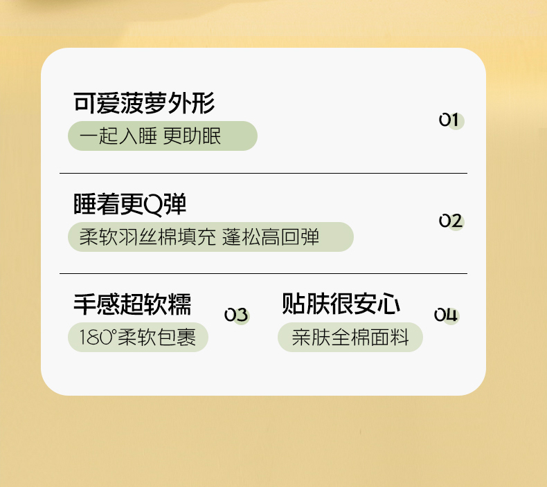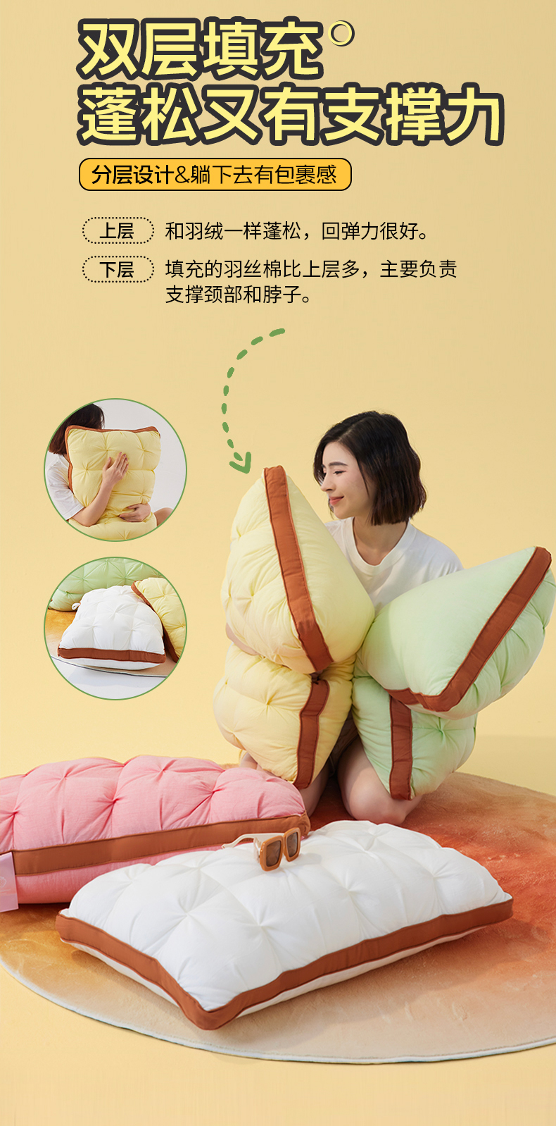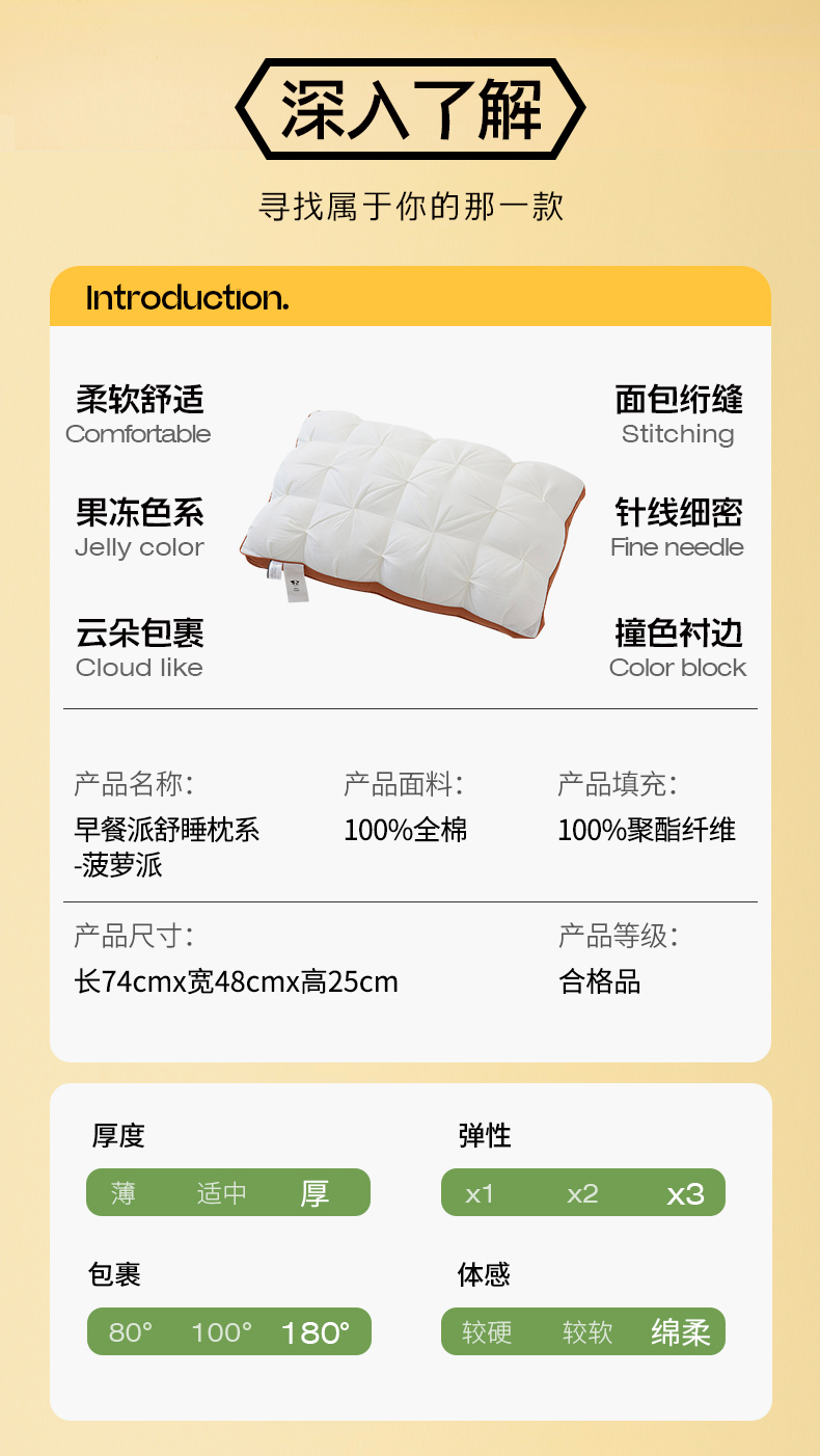 当前位置: 91家纺网 > 商品网购 > 枕头/枕芯/保健枕/颈椎枕 > 普通枕芯 > 安莱生活 2024新款5A抗菌早餐派创意系列枕芯-高枕-菠萝包枕 白色48*74cm一只