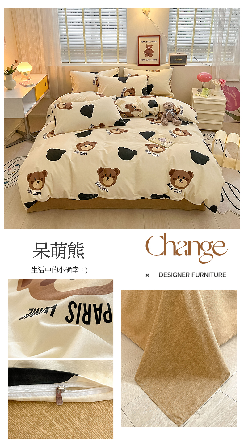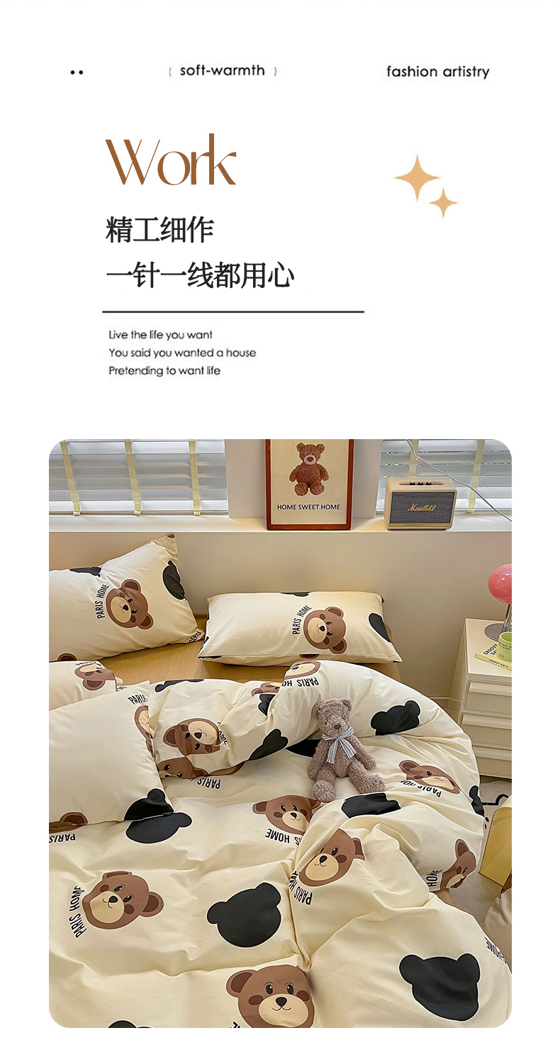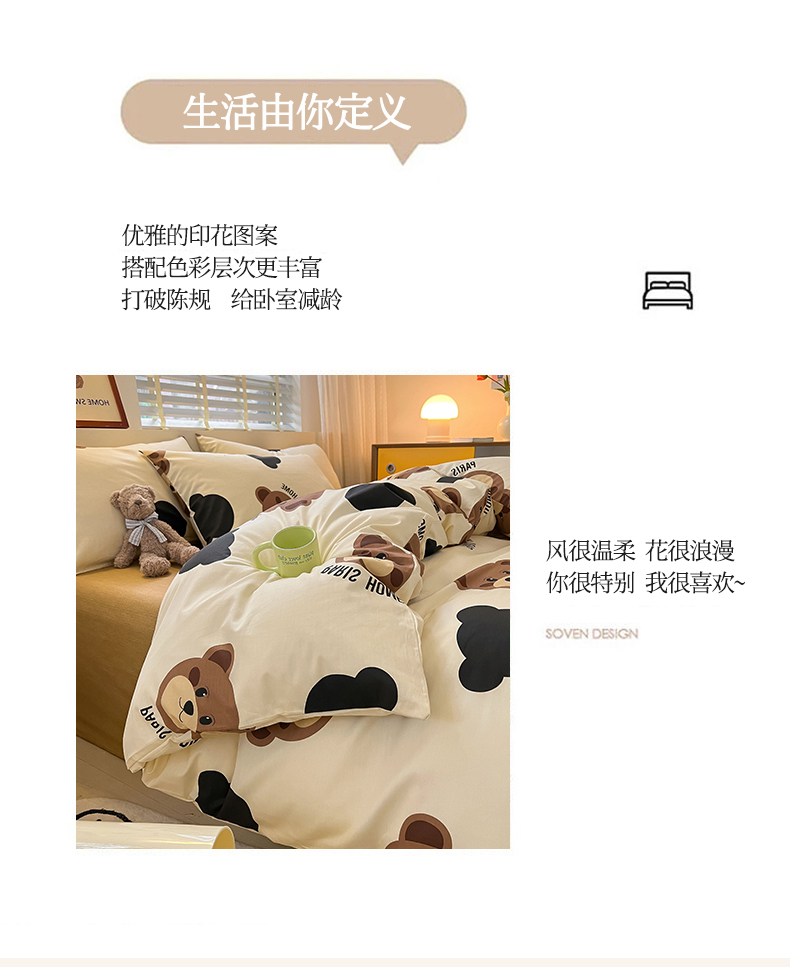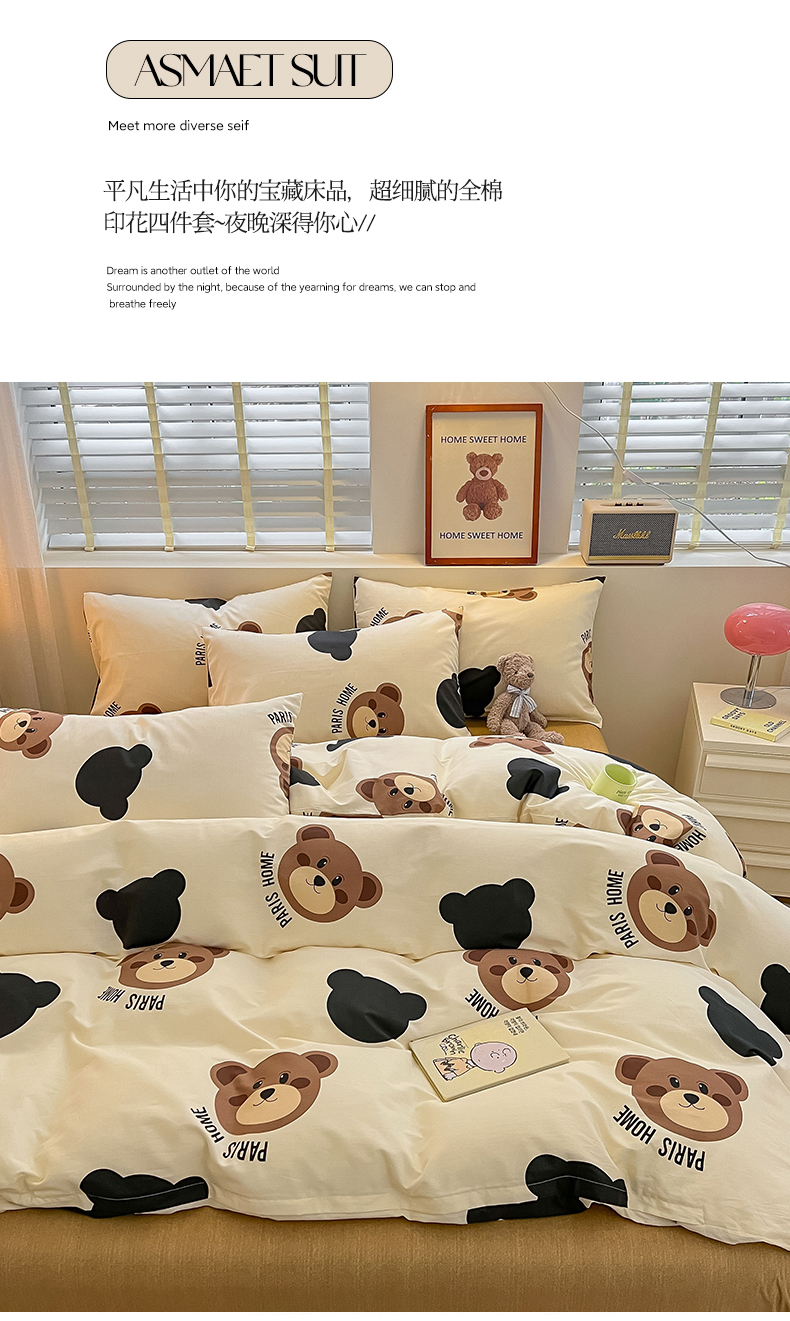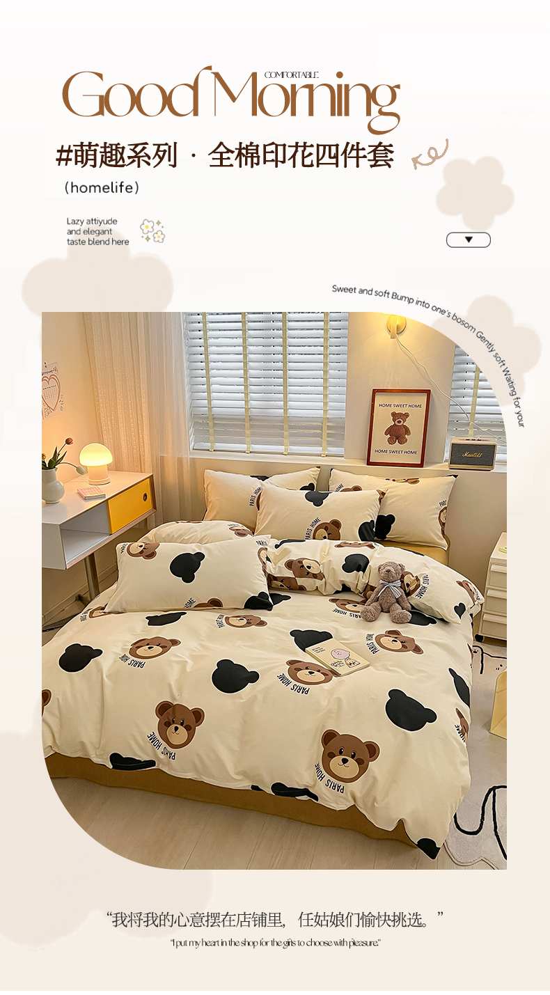 蓝邻家纺 2024新款全棉印花萌趣类四件套 呆萌熊
