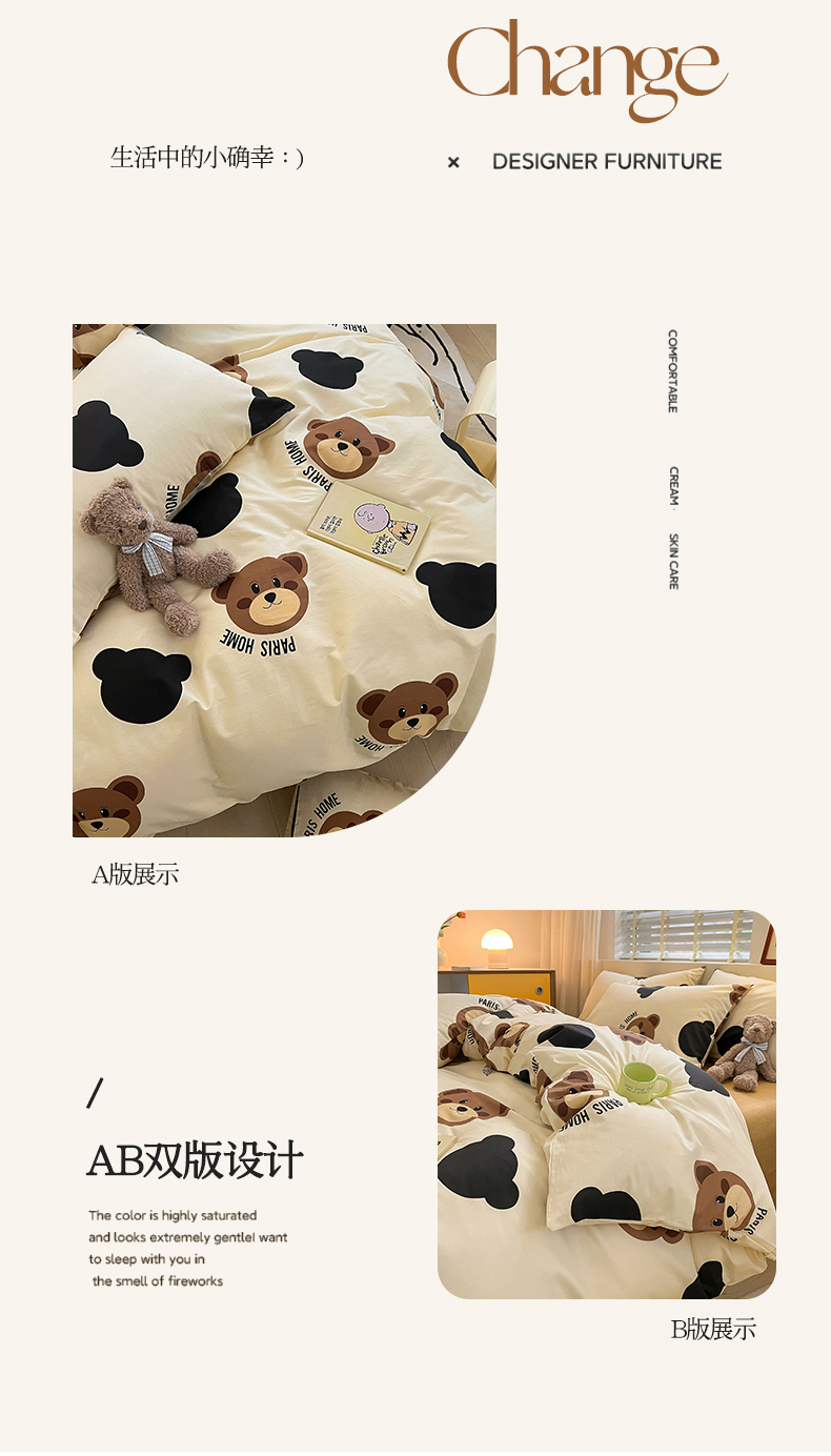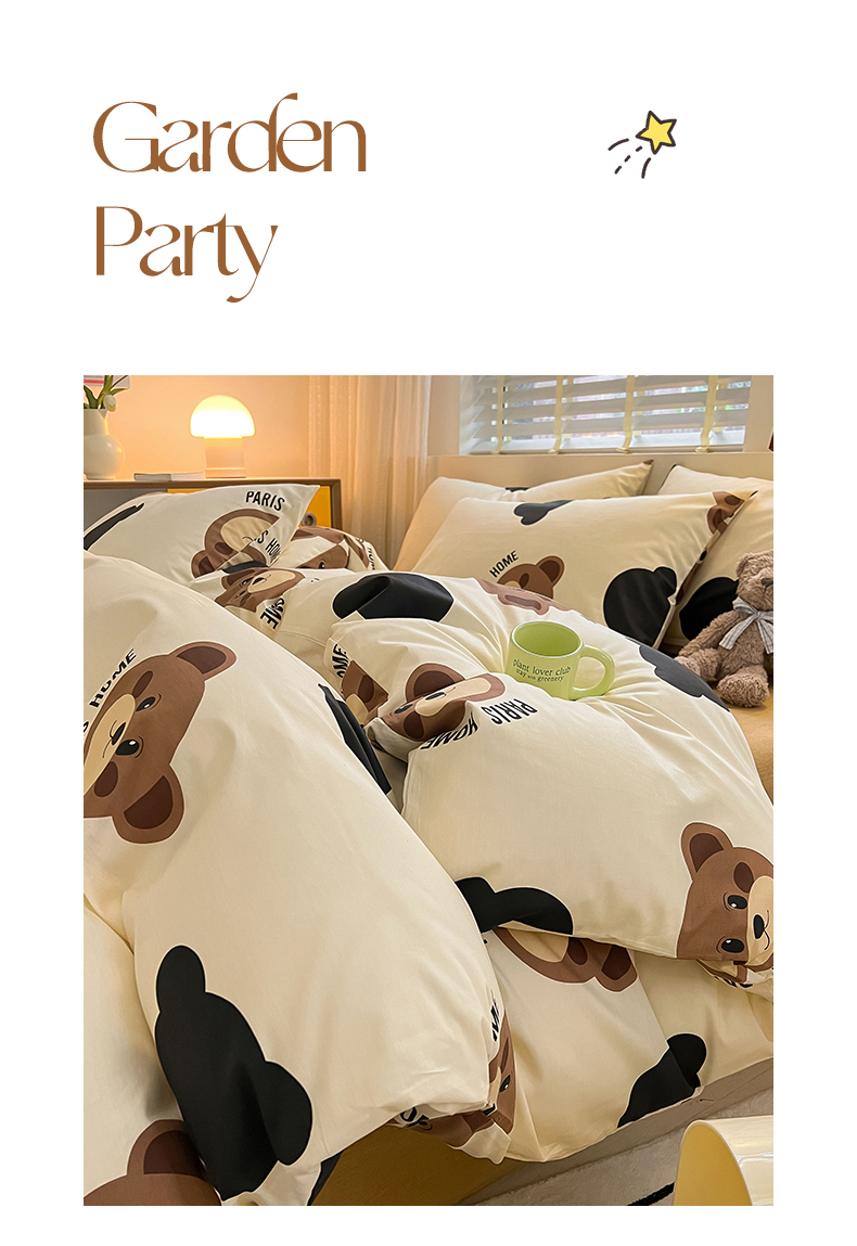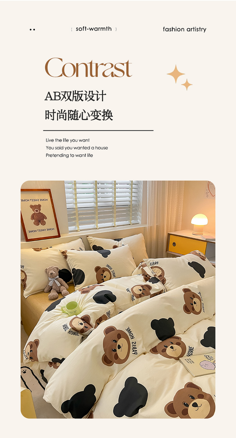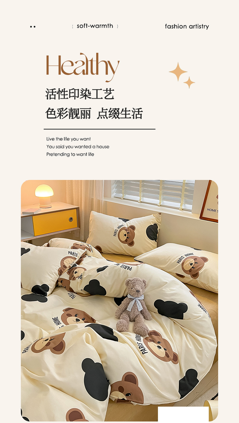 蓝邻家纺 2024新款全棉印花萌趣类四件套 呆萌熊