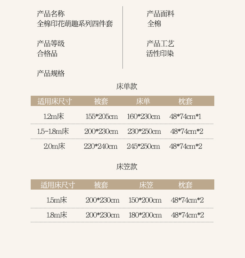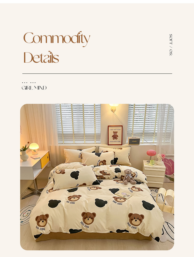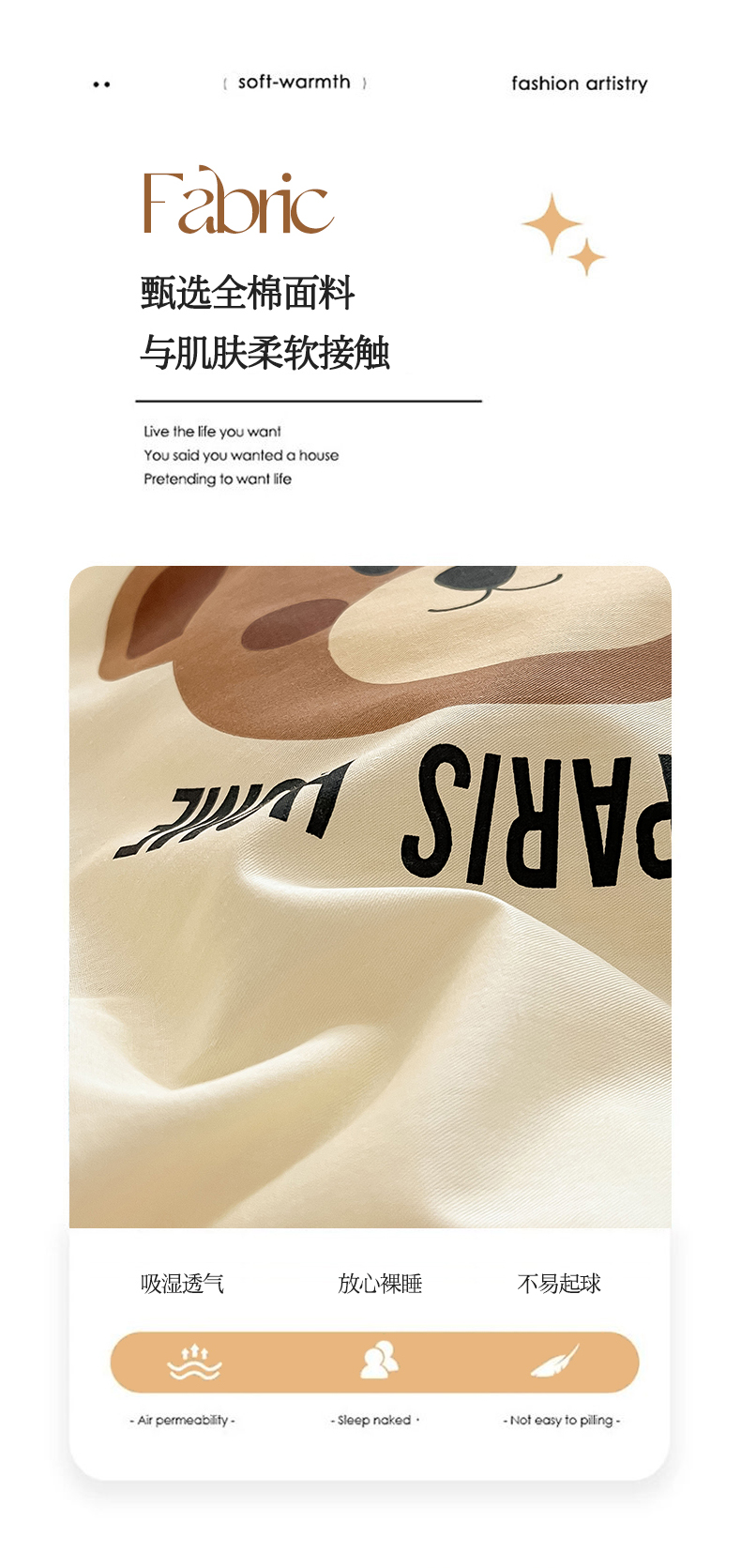 商品名称:蓝邻家纺 2024新款全棉印花萌趣类四件套 呆萌熊