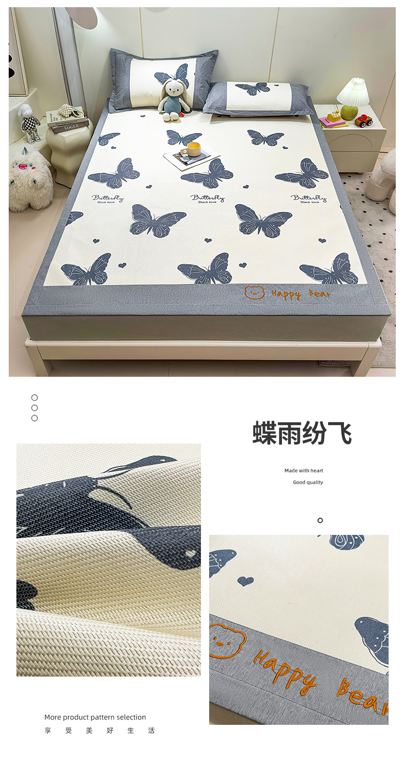 兄弟坊 2025新款冰藤印花刺绣凉席冰藤席风格二 蝶雨纷飞