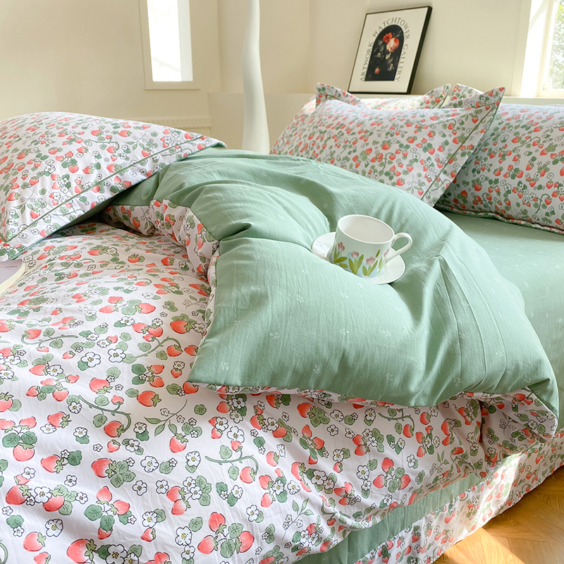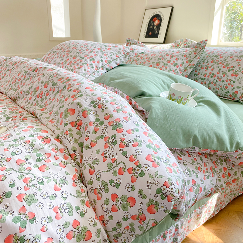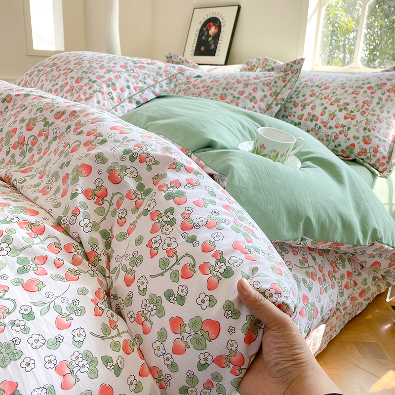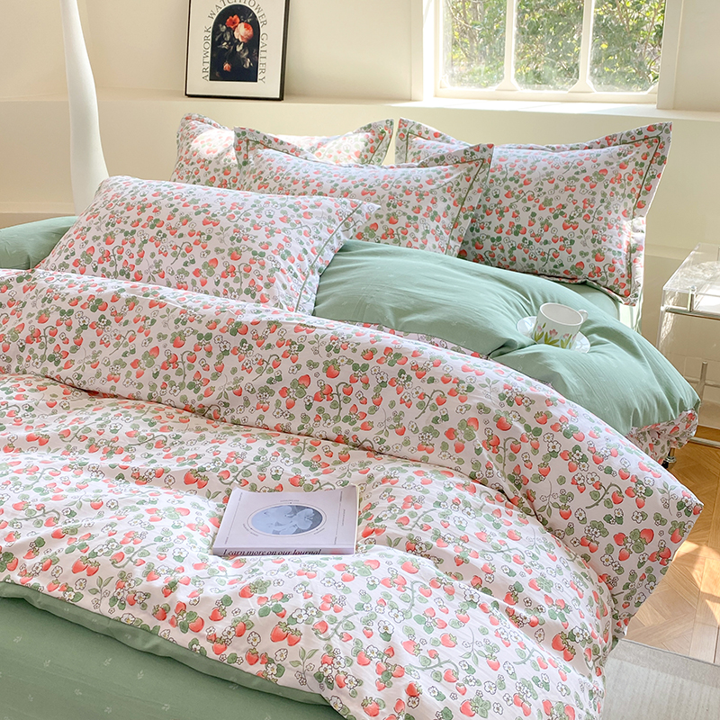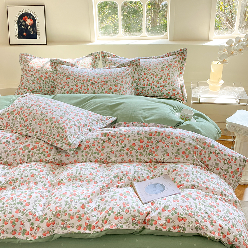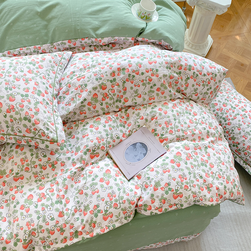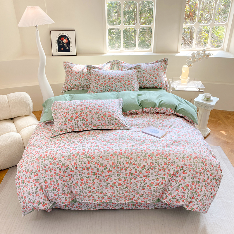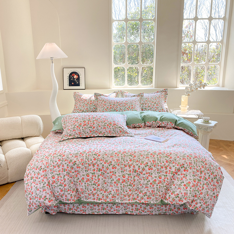 当前位置: 91家纺网 > 商品网购 > 床品套件 > 四件套 > 全棉普通四件套 > 家贝爱 2024春日新款A类精选高支高密水洗云锦棉四件套 草莓粉