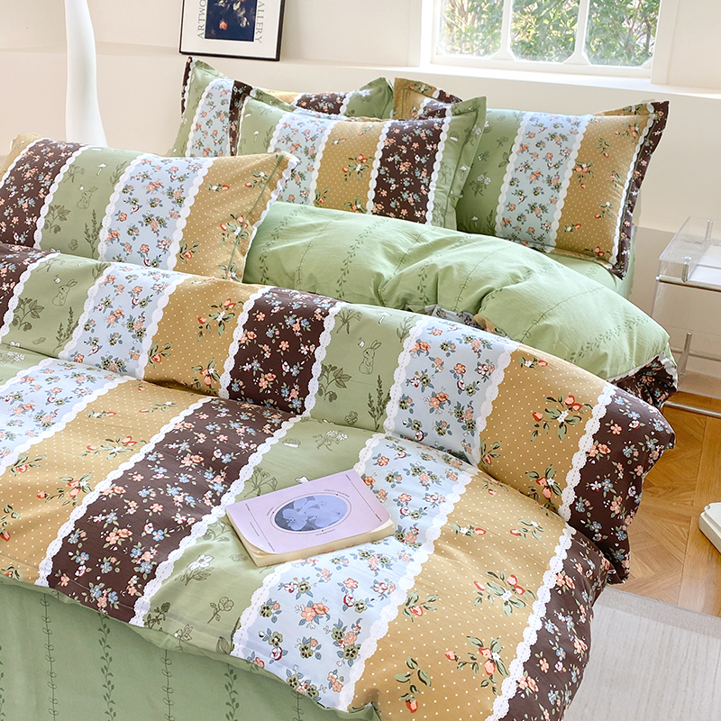 当前位置: 91家纺网 > 商品网购 > 床品套件 > 四件套 > 全棉普通四件套 > 家贝爱 2024春日新款A类精选高支高密水洗云锦棉四件套 小兔花园