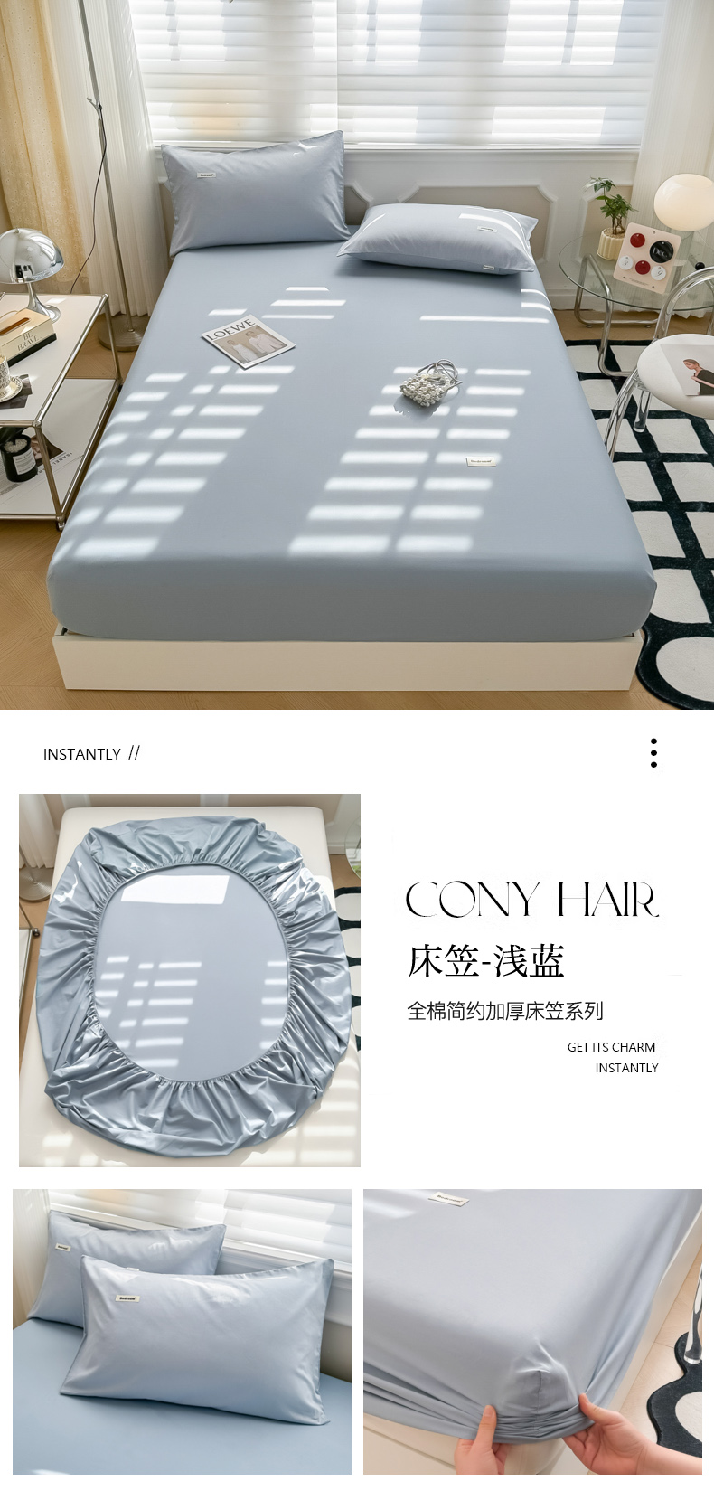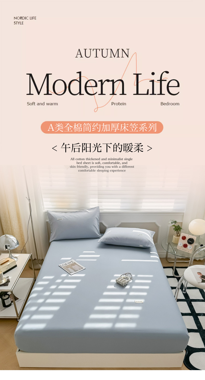 • 91家纺网 家纺一手货源 找家纺 眠博士 2024新款全棉40支简约加厚纯色单品系列-单床笠 床笠-浅蓝