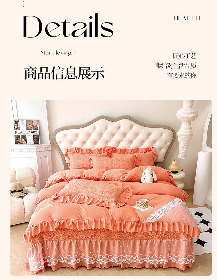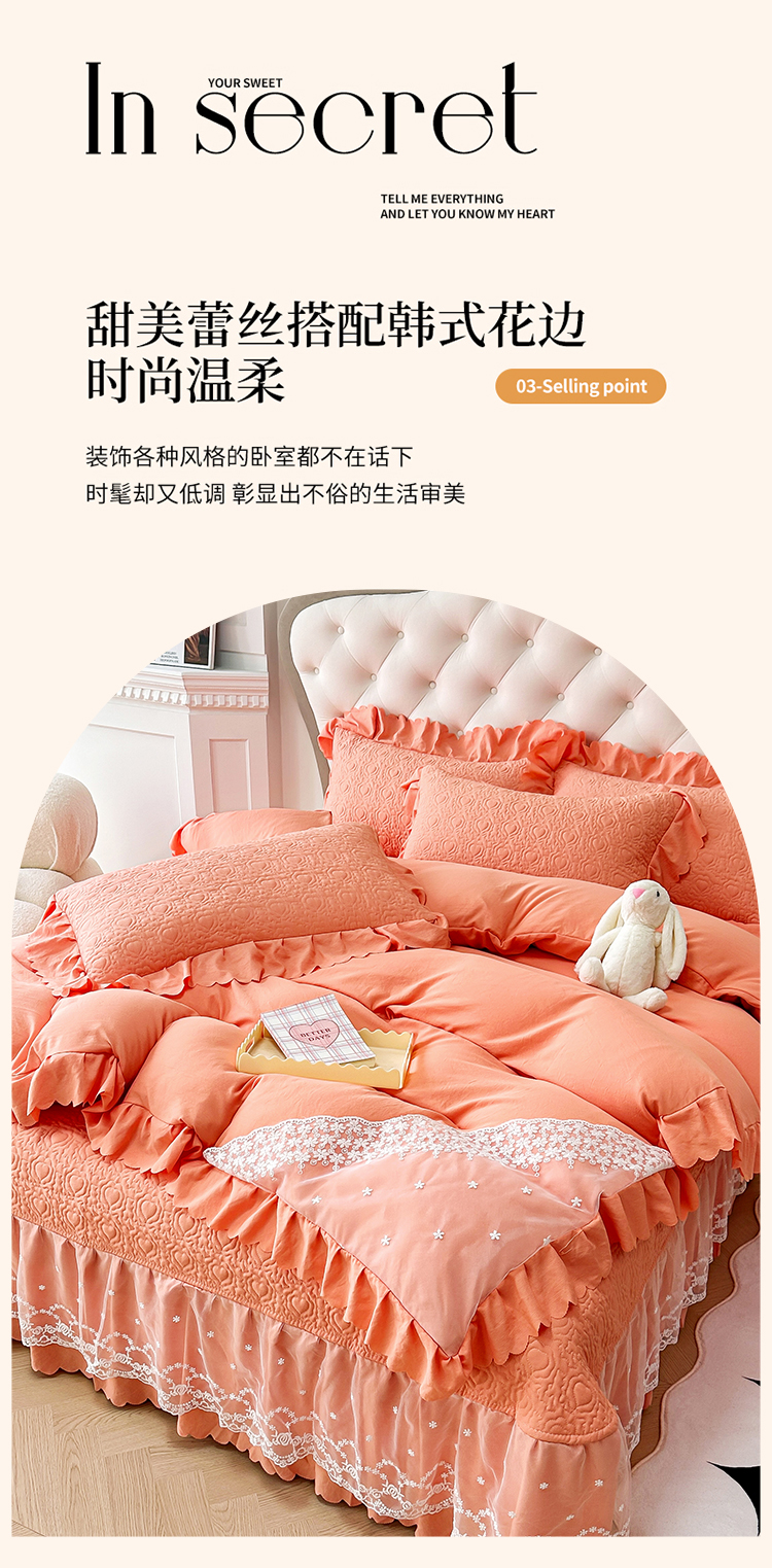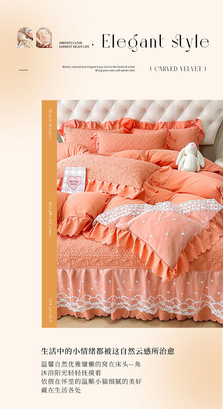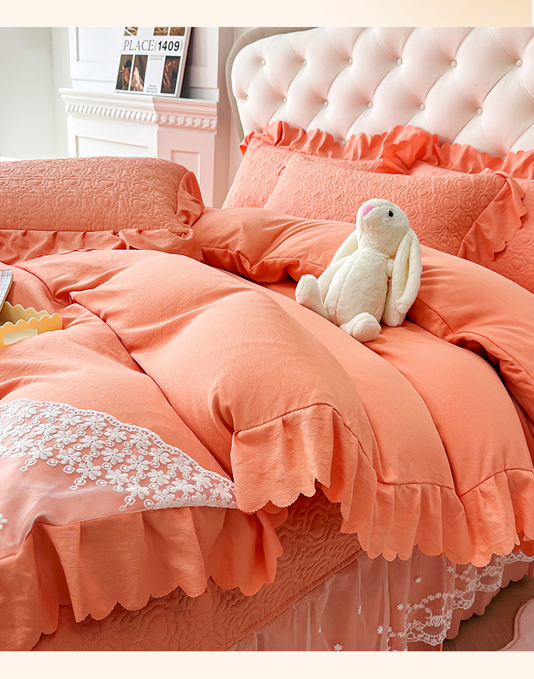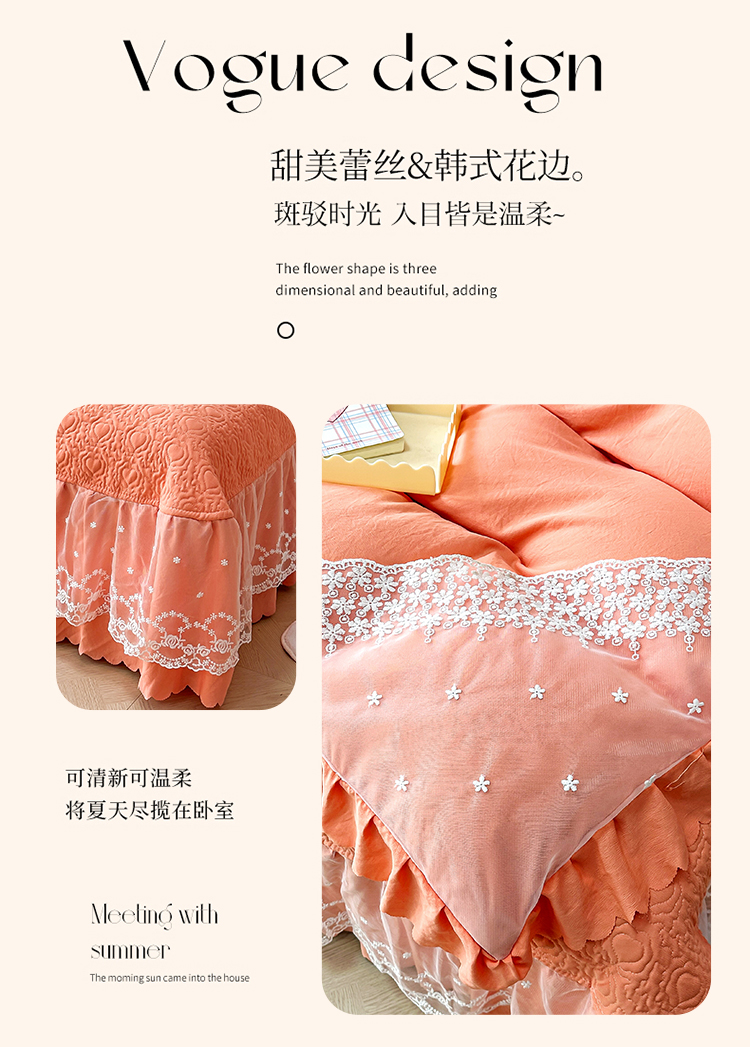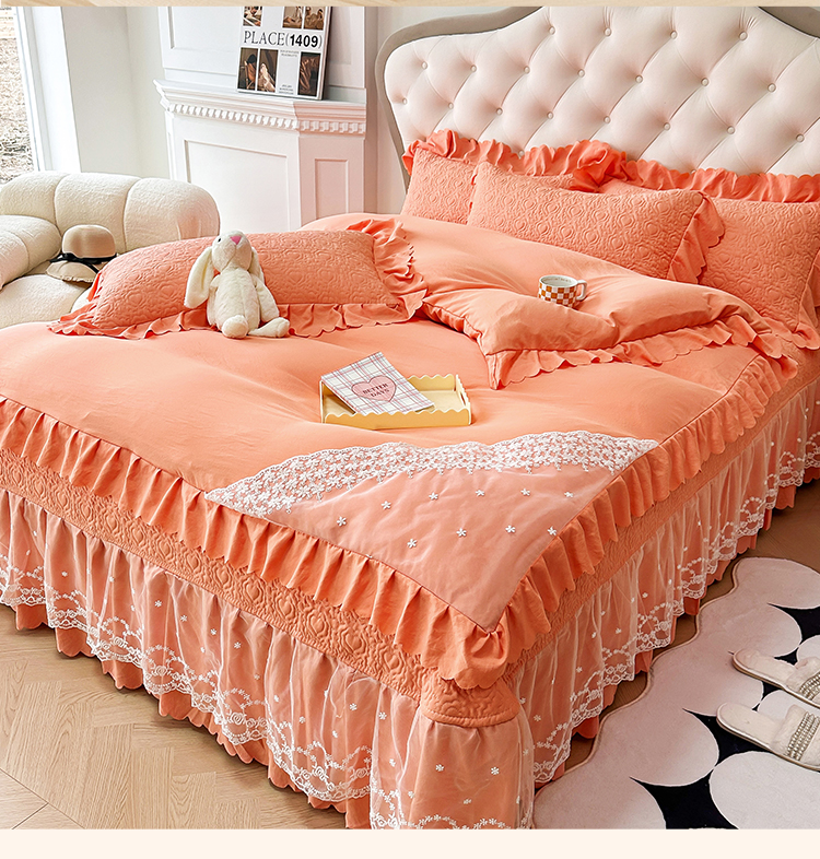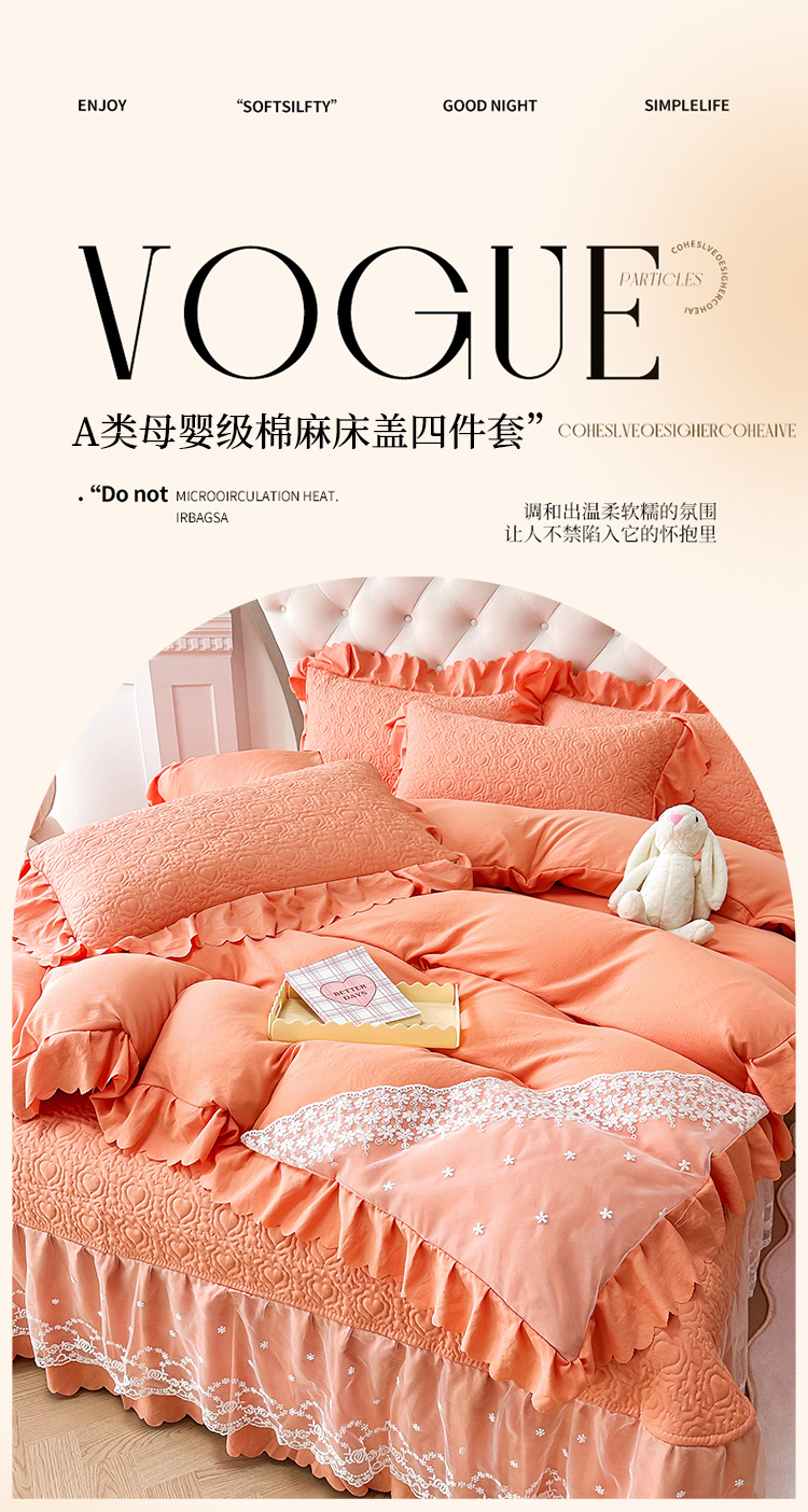 (总)2025春夏新款A类母婴级双层纱棉麻蕾丝花边床盖四件套—安妮系列
