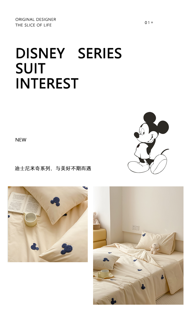 免费授权迪士尼全棉水洗棉四件套毛巾绣迪士尼四件套Diseny,米奇-白,米奇-纸棕,米奇-浅蓝