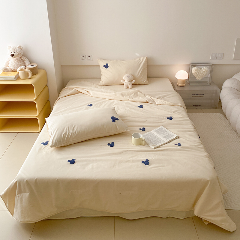 Mr.pig猪先生水洗棉 2024新款迪士尼全棉夏被四件套米奇毛巾绣夏凉被 米奇头杏仁白