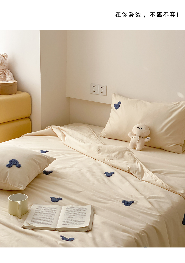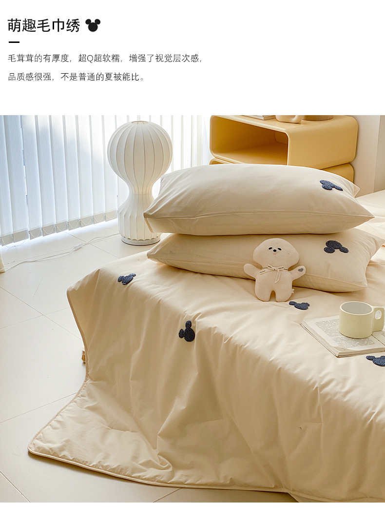 商品名称:Mr.pig猪先生水洗棉 2024新款迪士尼全棉夏被四件套米奇毛巾绣夏凉被 米奇头杏仁白