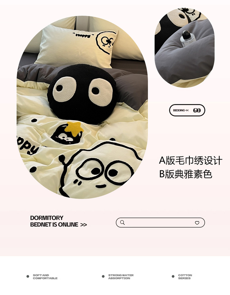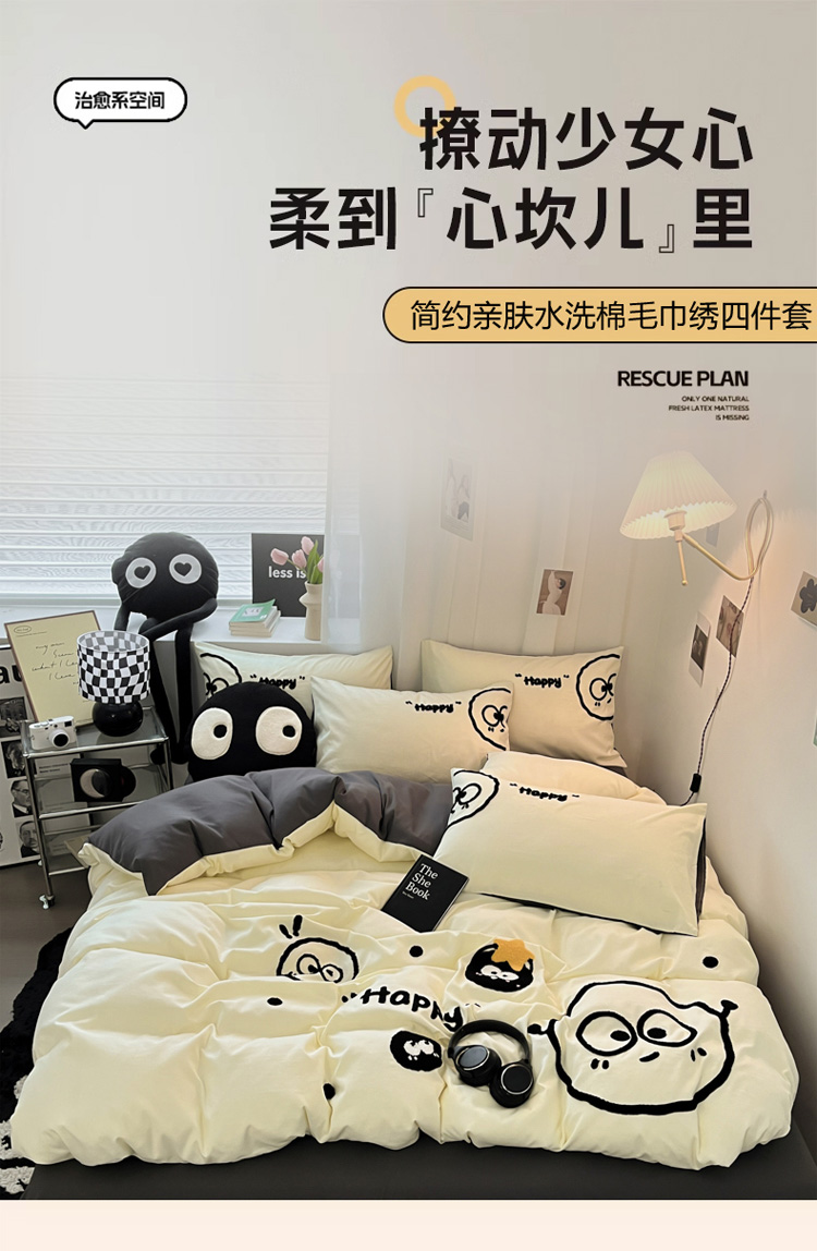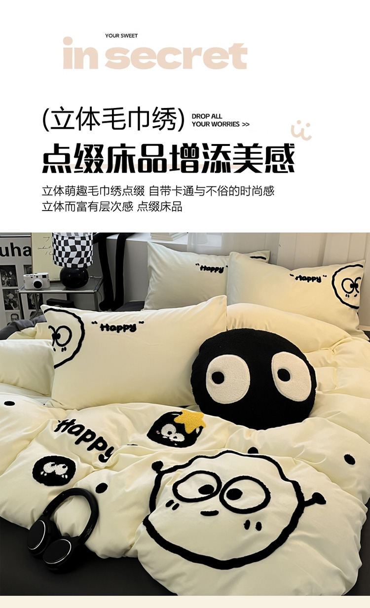 当前位置: 91家纺网 > 商品网购 > 床品套件 > 四件套 > 水洗棉四件套 > 沐慕家居 2024毛巾绣四件套 黑球球-米灰