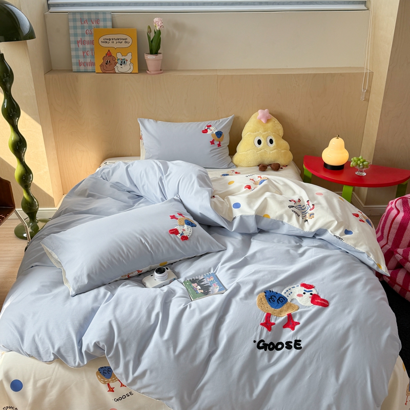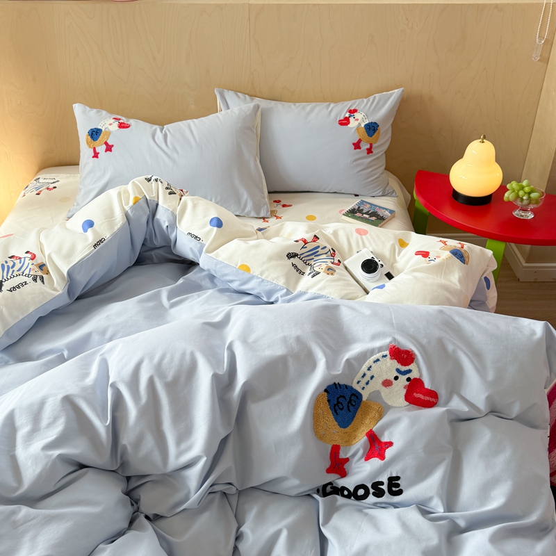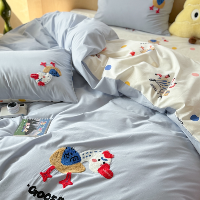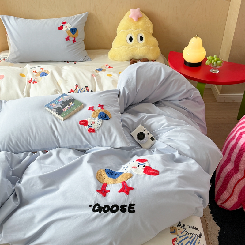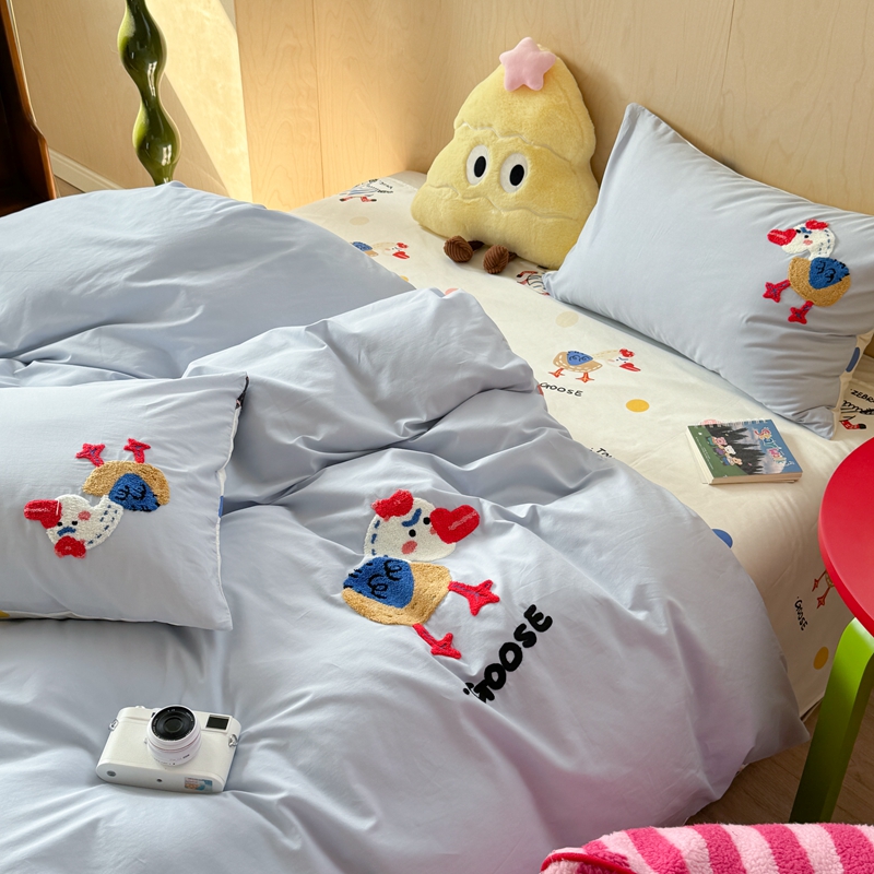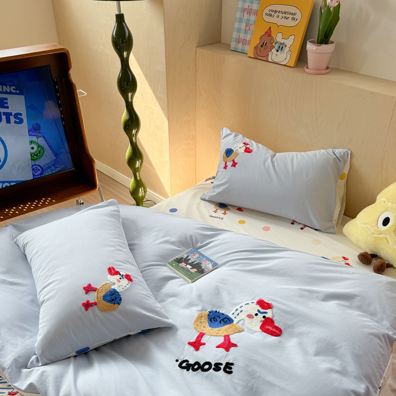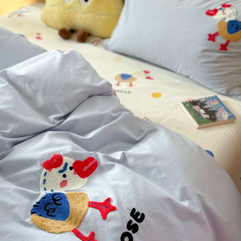 柚子YOUTH 2024新款40支全棉水洗棉印+绣跑量款四件套 歪头鹅
