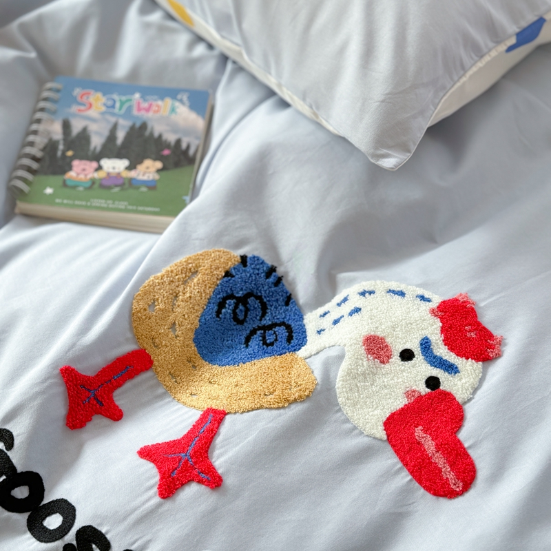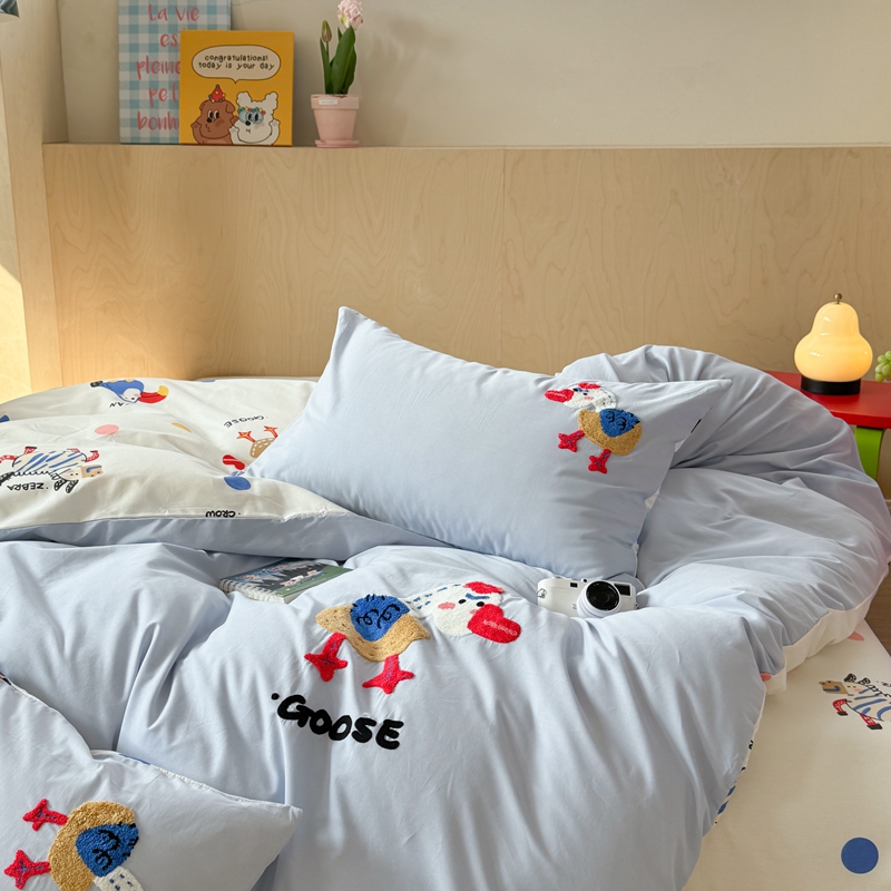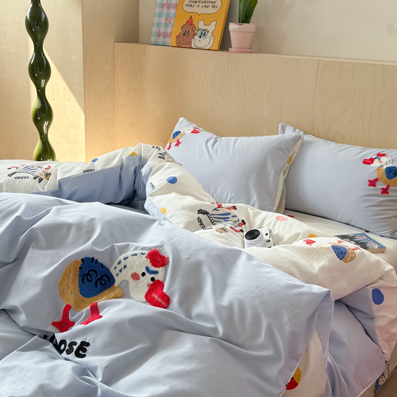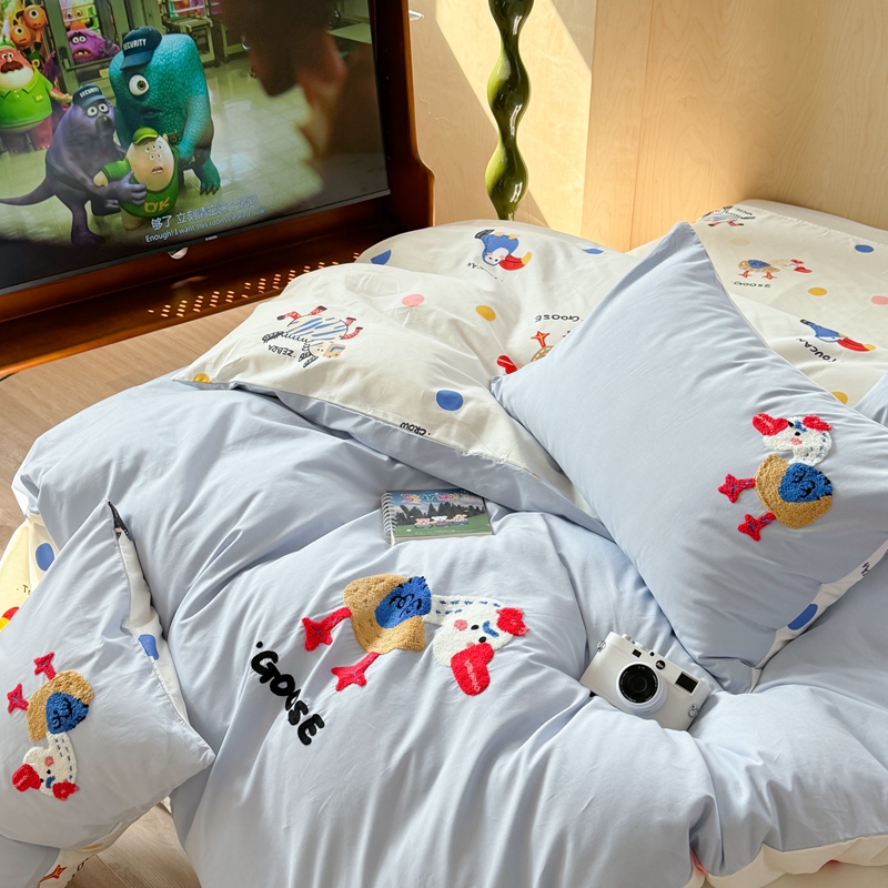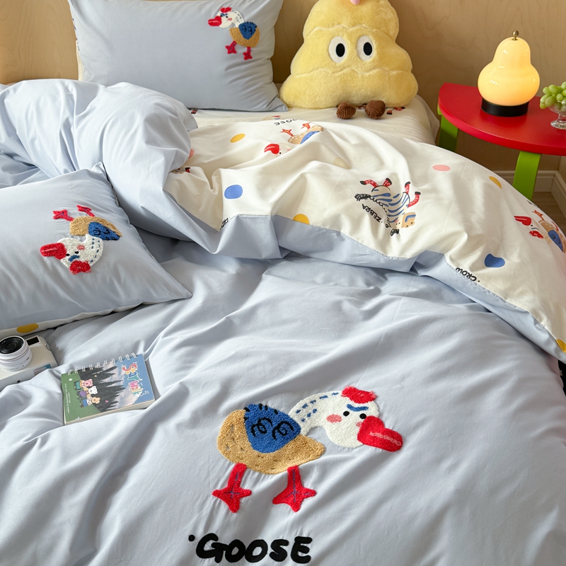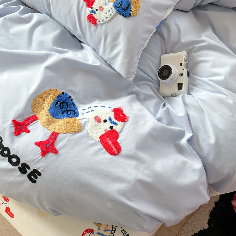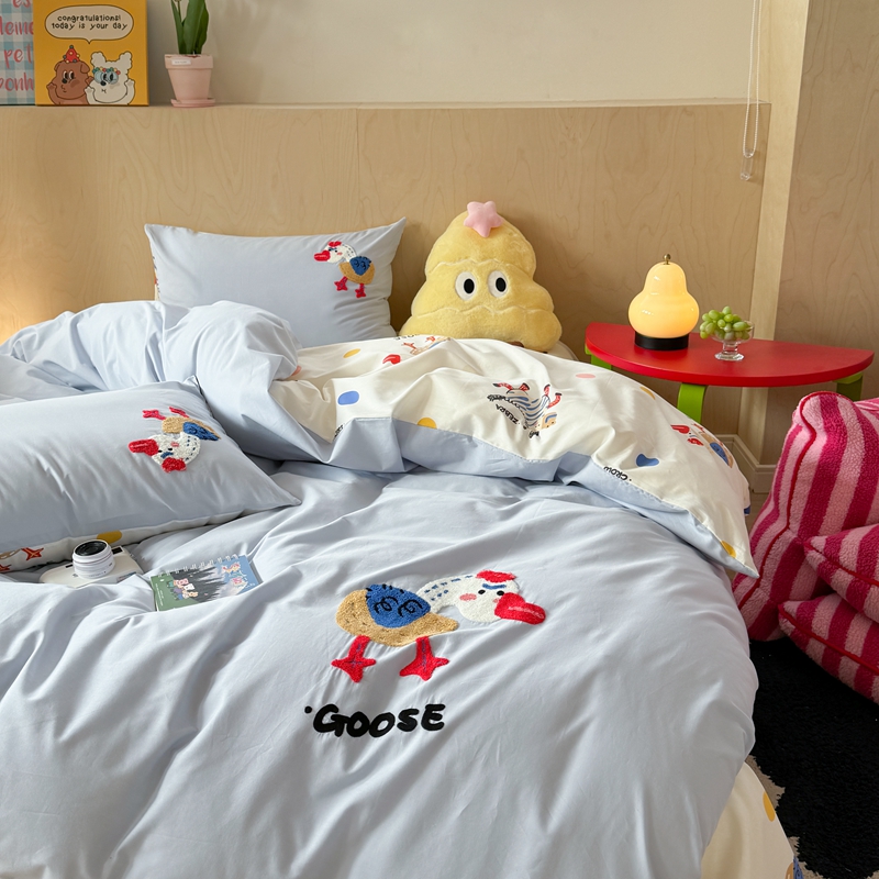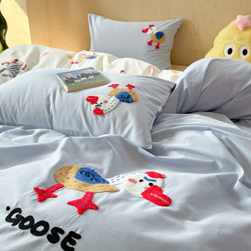 柚子YOUTH 2024新款40支全棉水洗棉印+绣跑量款四件套 歪头鹅