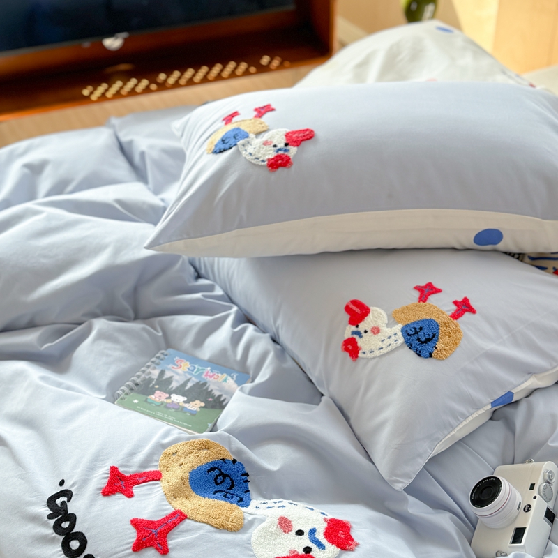 (总)柚子YOUTH 2025新款全棉纯棉工艺款13070贴布绣四件套,爱心小象,毛绒小狗,蘑菇女孩,星星法师