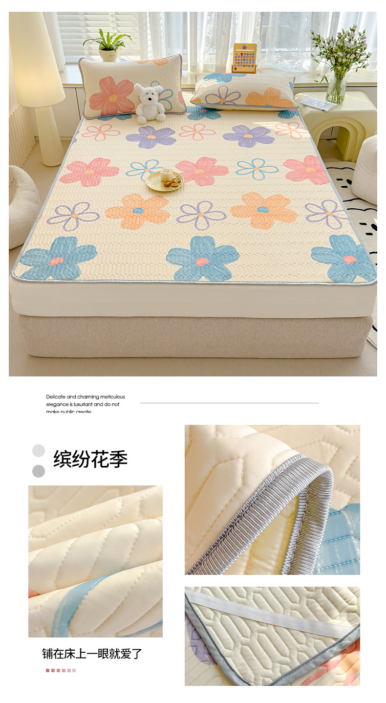 商品名称:伊人坊 2024新款A类凉感丝乳胶凉席三件套 缤纷花季