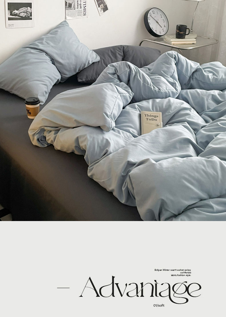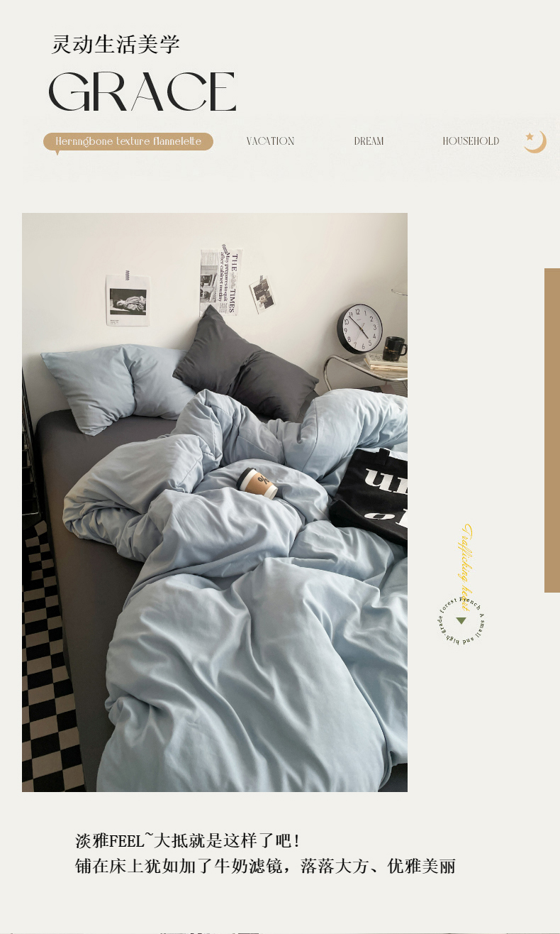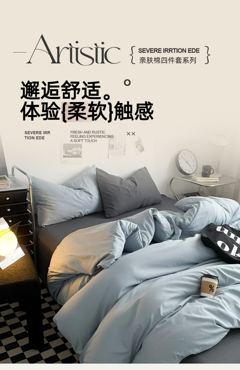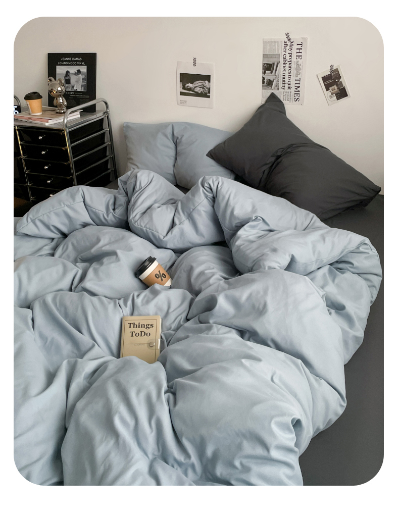 当前位置: 91家纺网 > 商品网购 > 床品套件 > 四件套 > 全棉普通四件套 > 思诺羽床笠 2024新款水洗棉纯色混搭四件套系列 雾蓝+高级灰