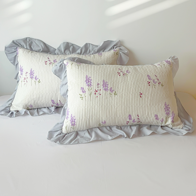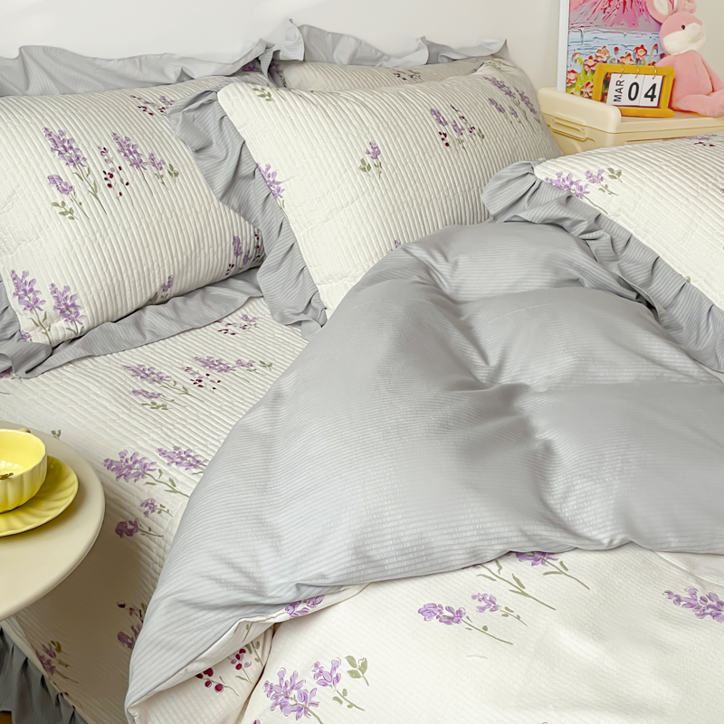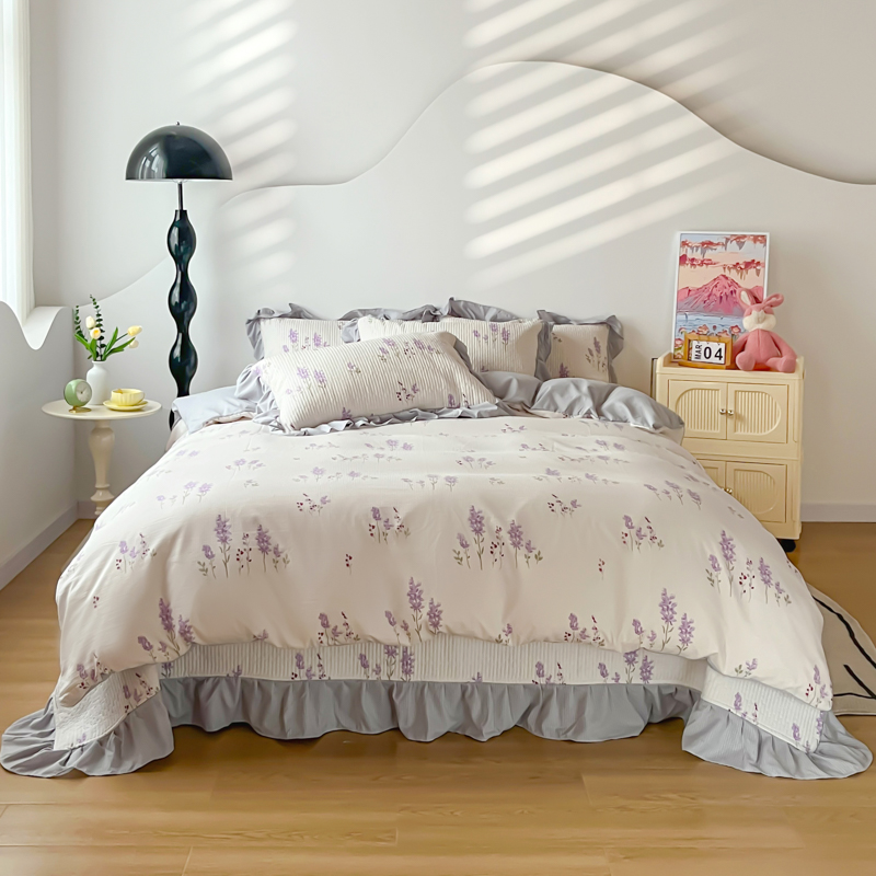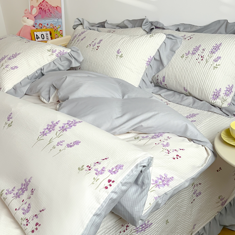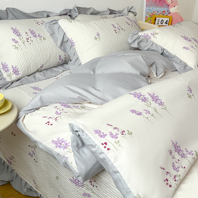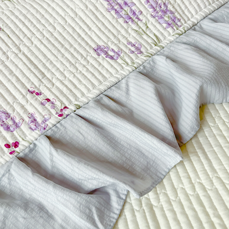 子曰 2024新款印花素色花边床盖三件套四件套 薰衣草