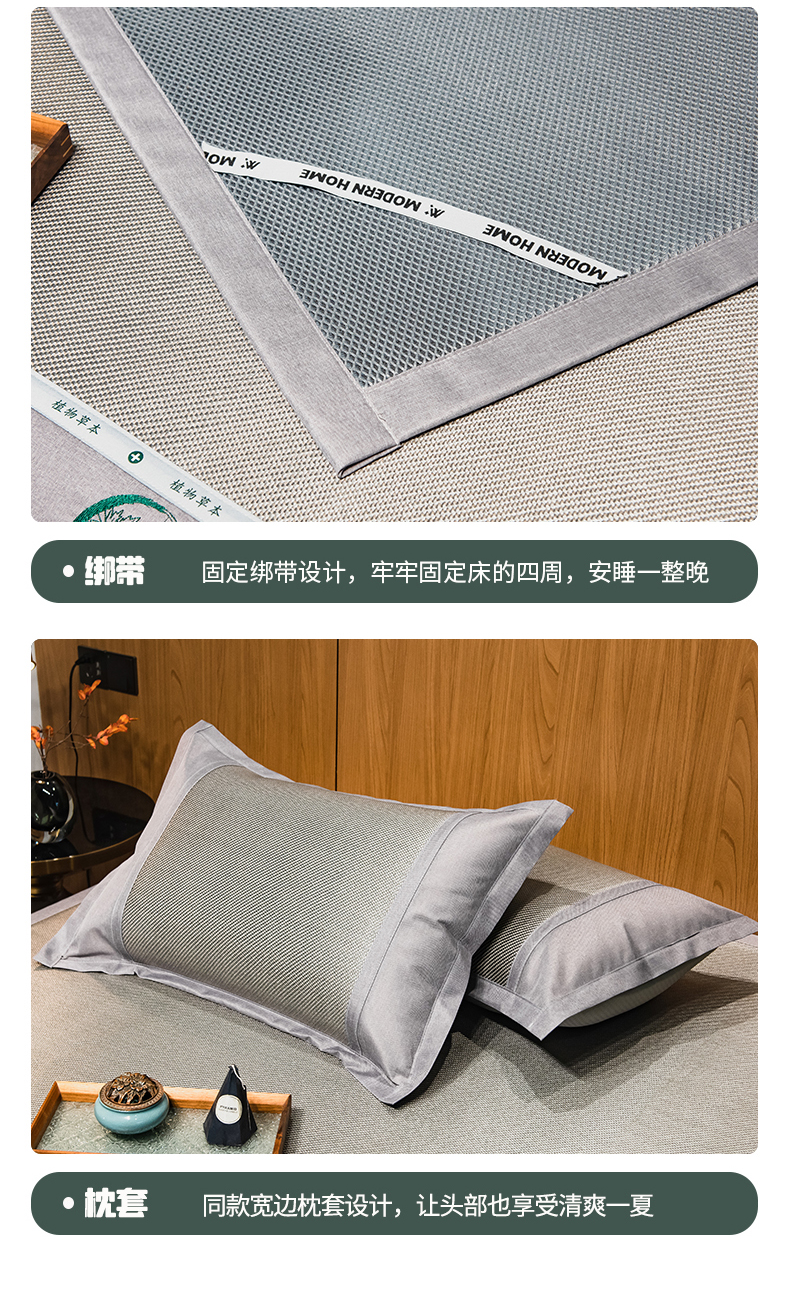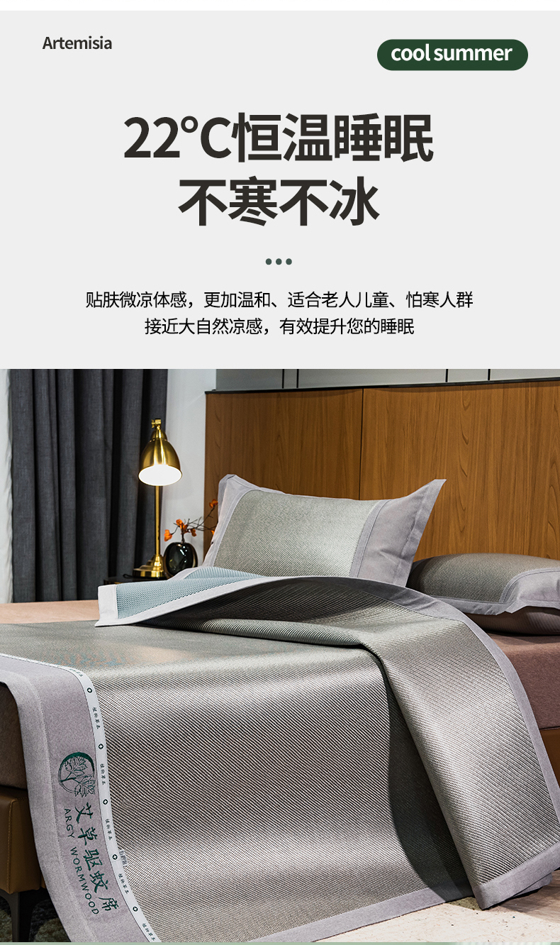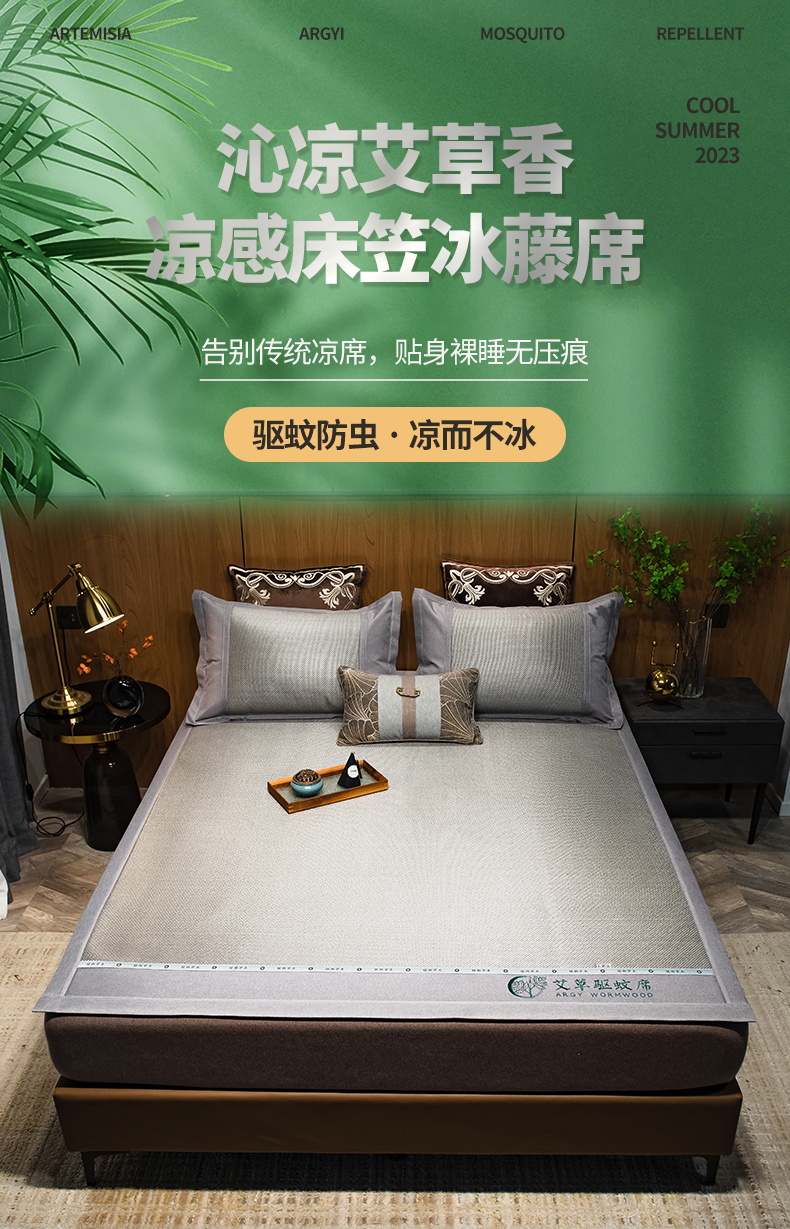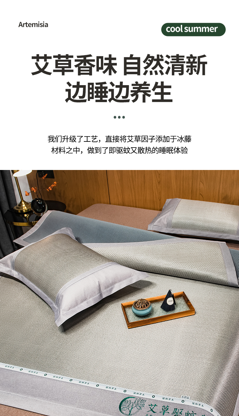 商品名称:全季家居 2024新款A类艾草驱蚊冰藤席 艾草-浅灰
