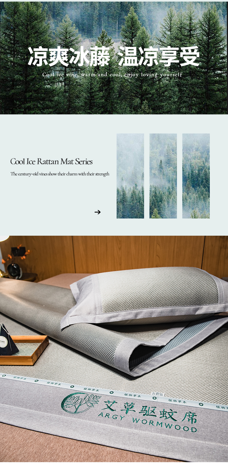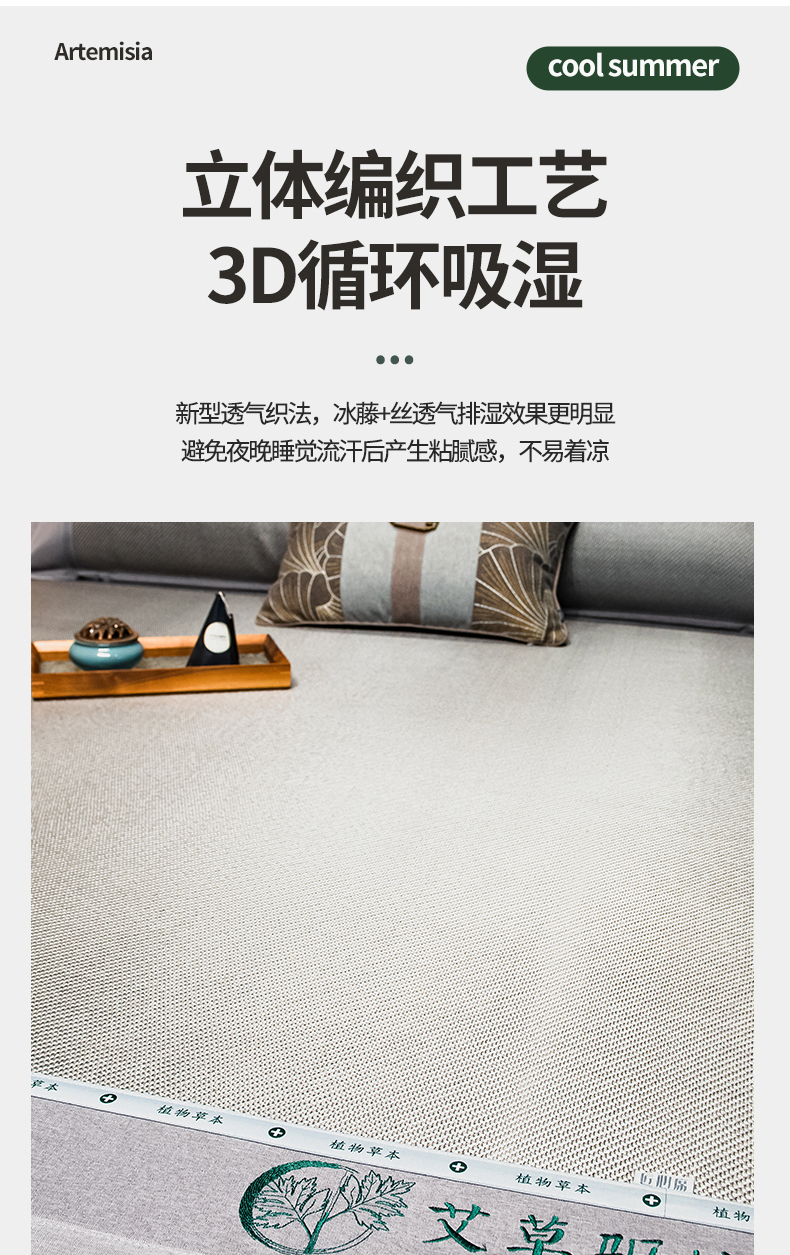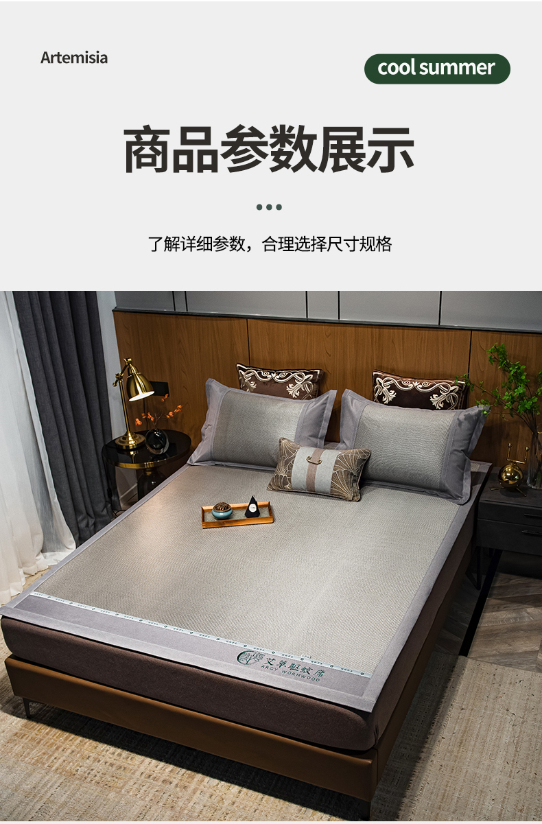 商品名称:全季家居 2024新款A类艾草驱蚊冰藤席 艾草-浅灰
