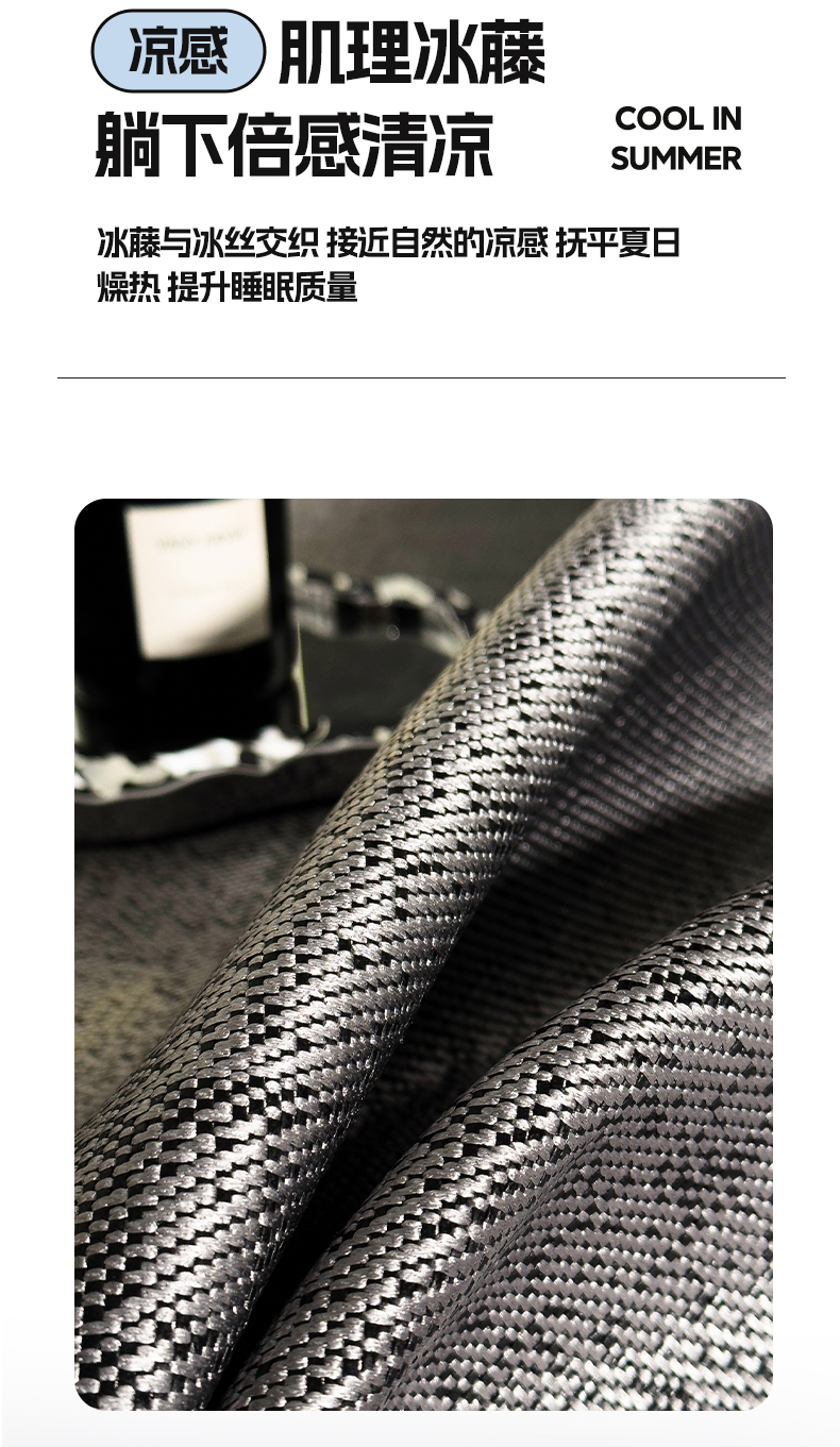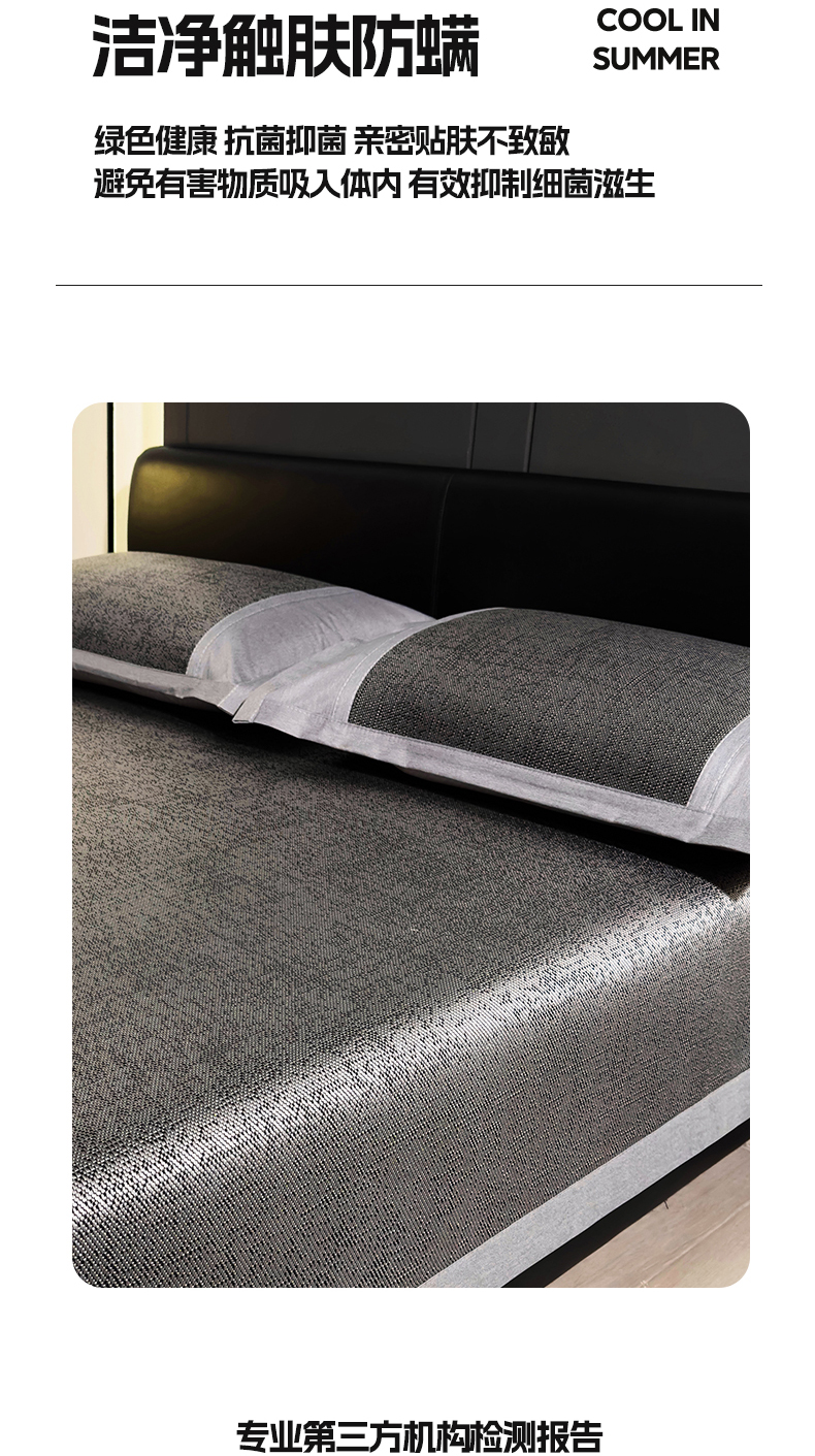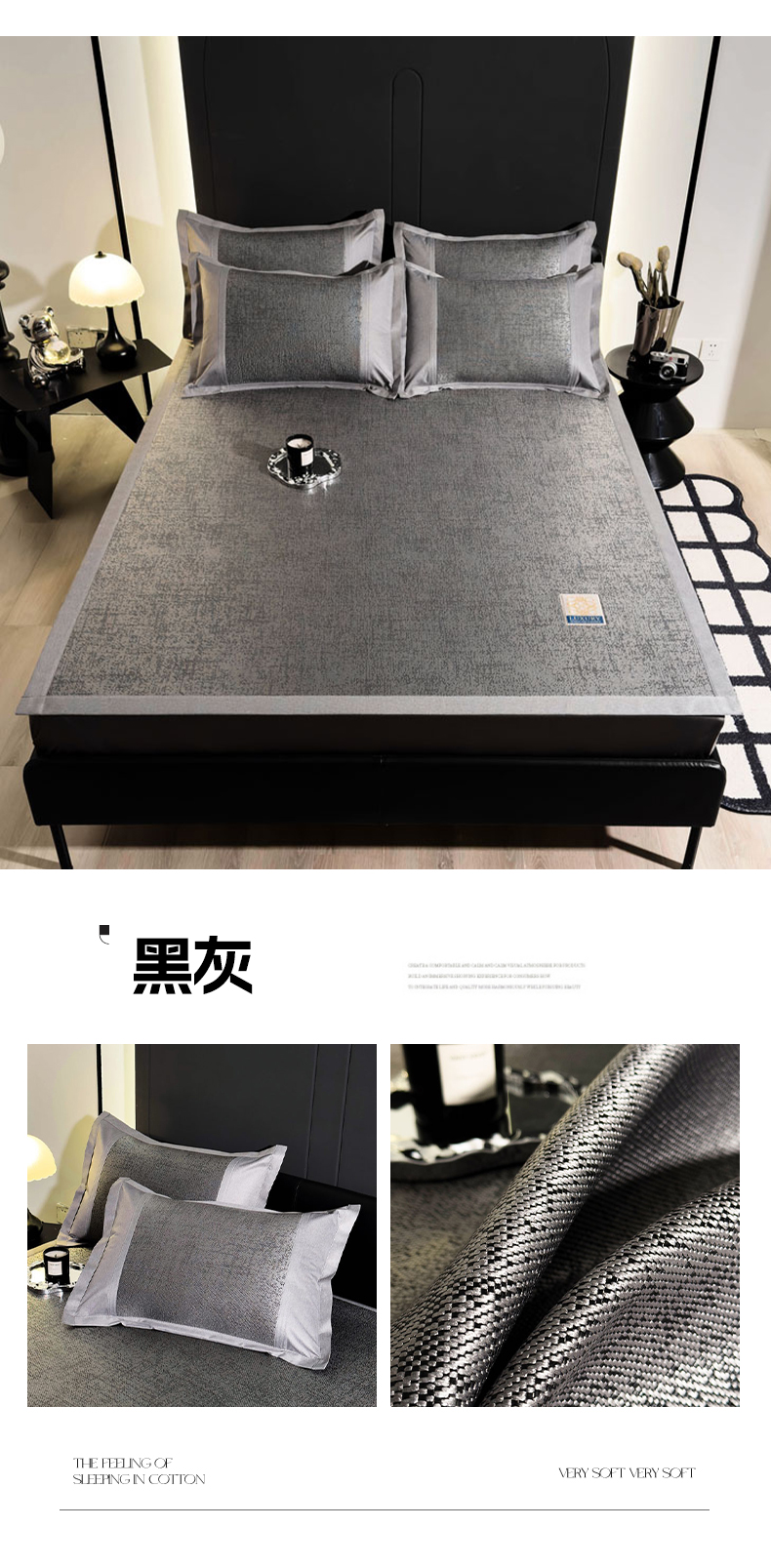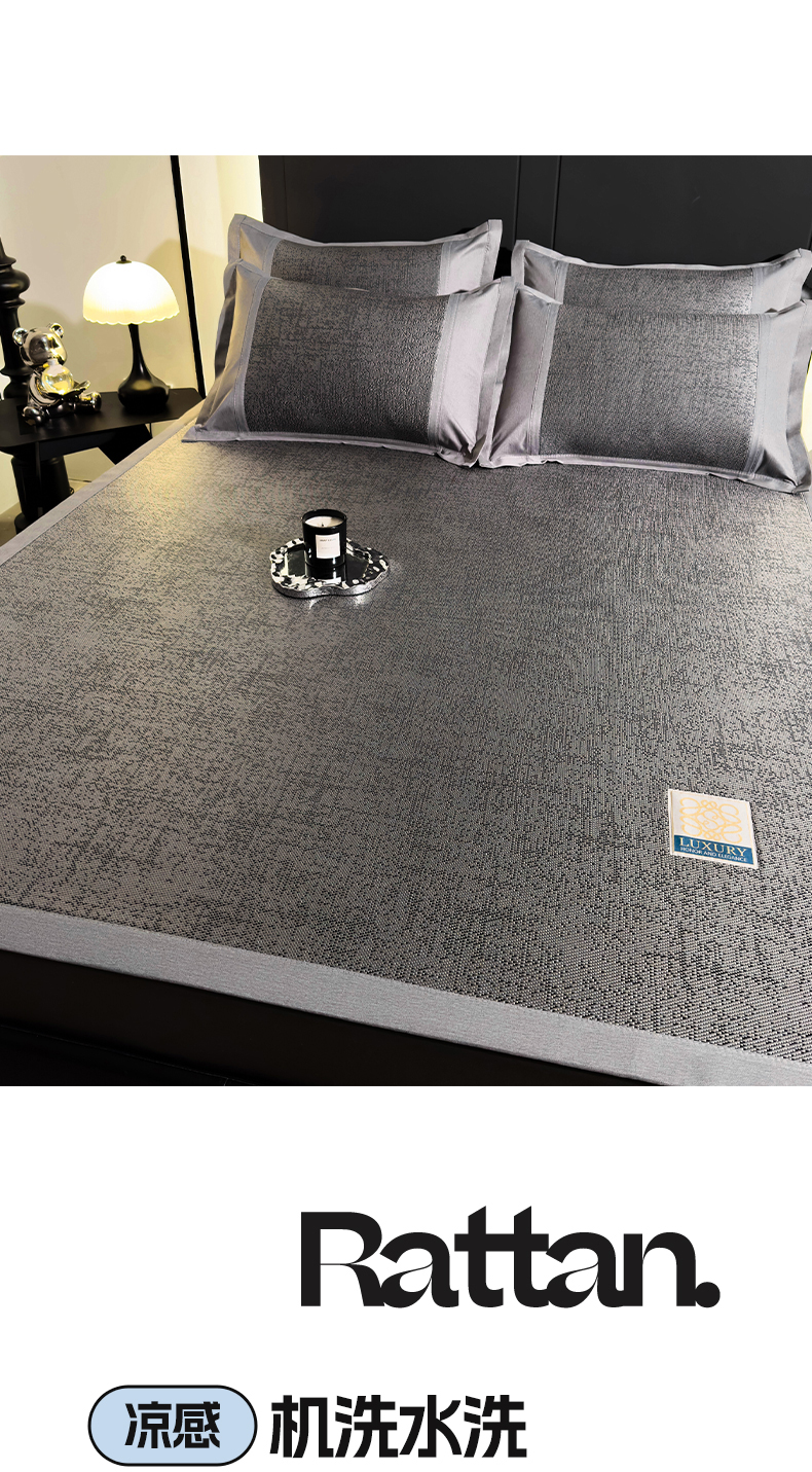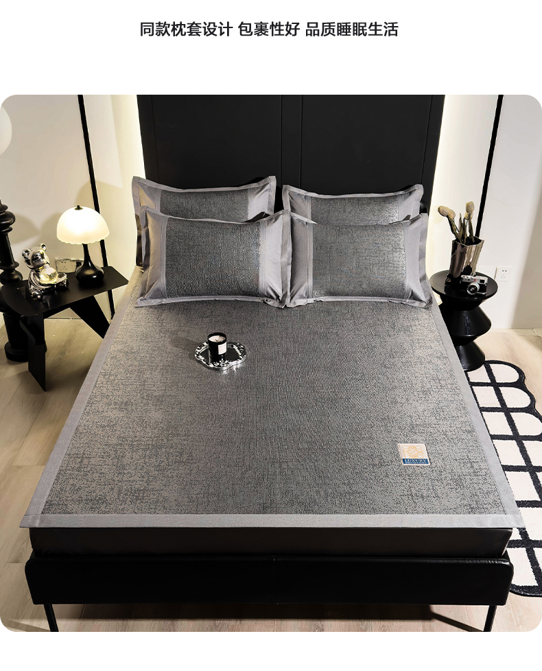商品名称:全季家居 2024新款5A抗菌纯色现代肌理纹冰藤席 黑灰
