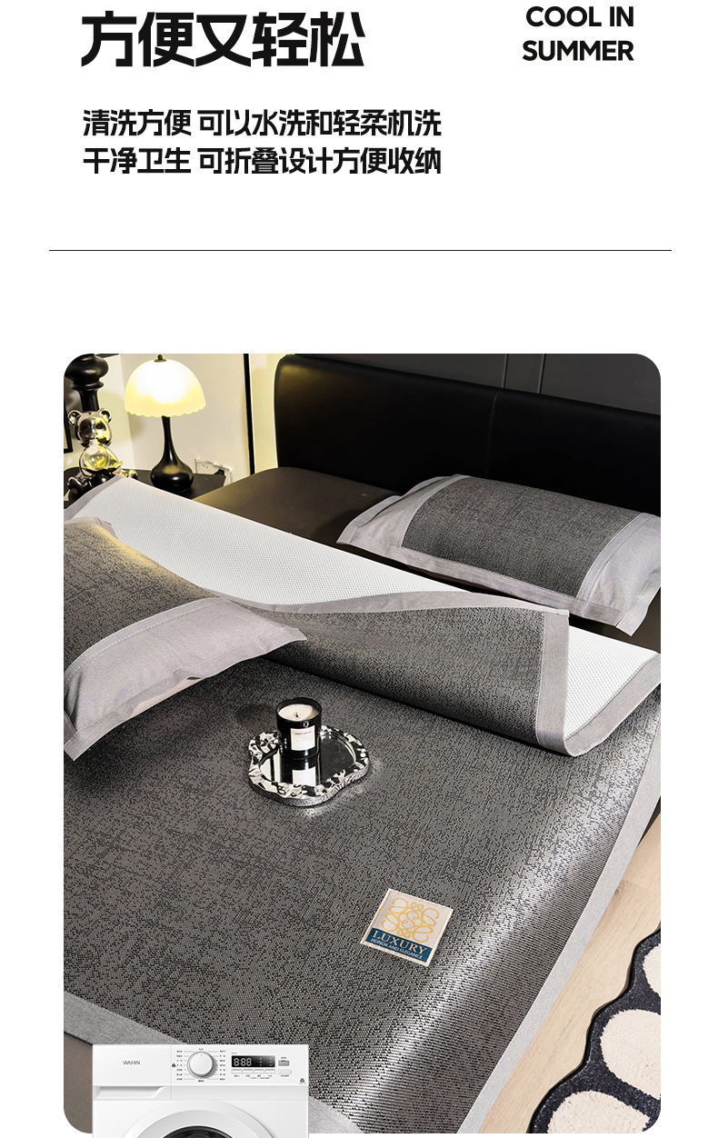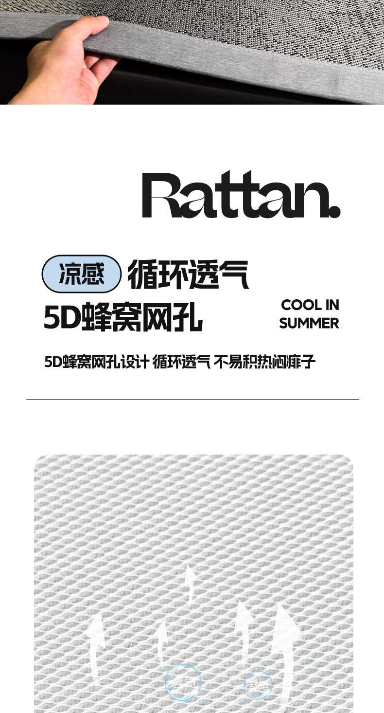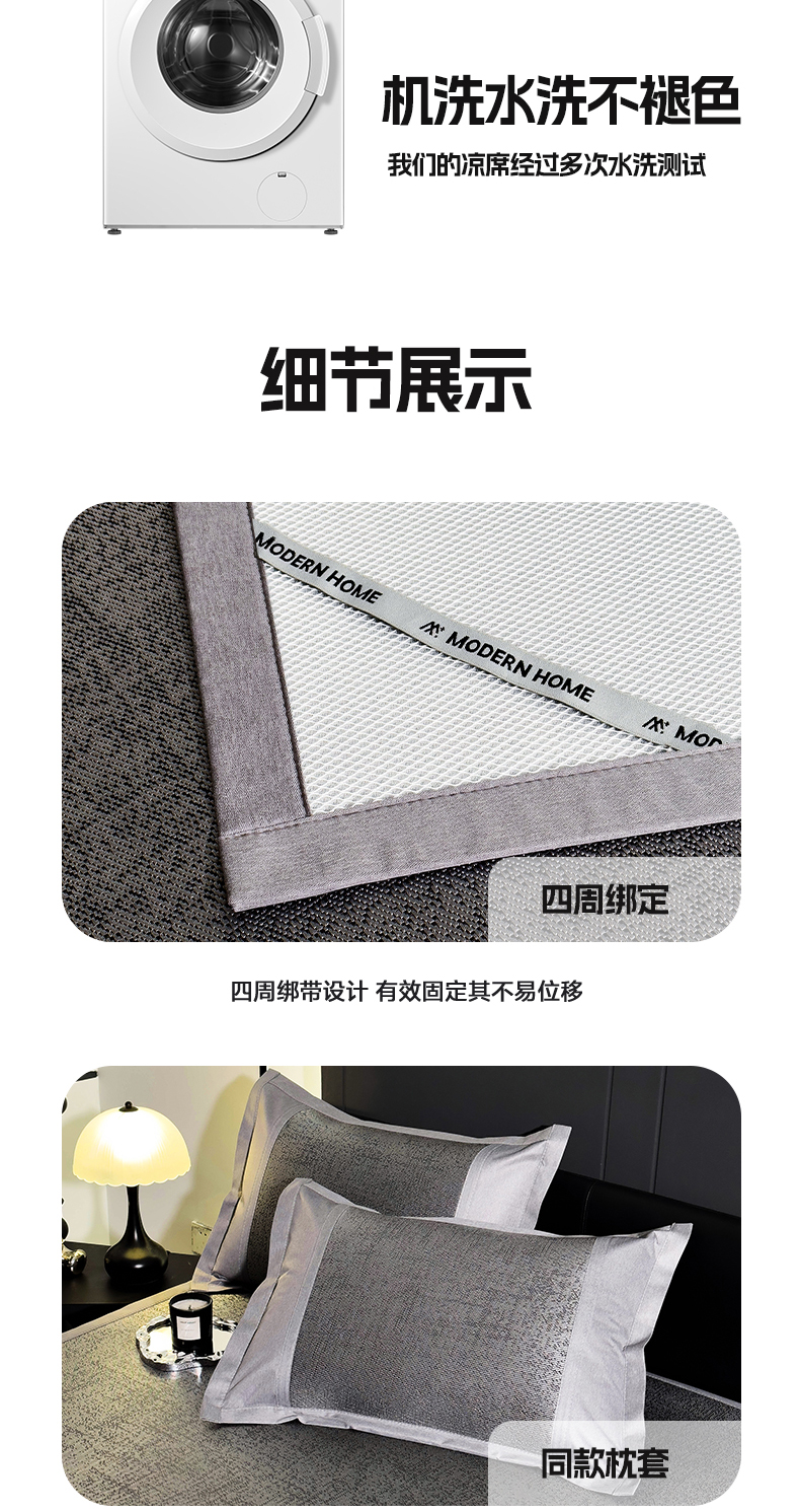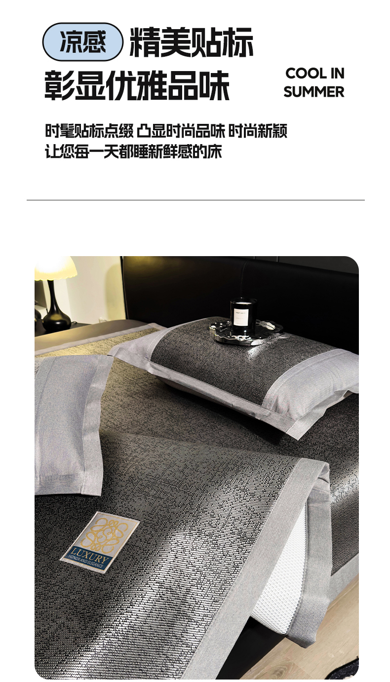 商品名称:全季家居 2024新款5A抗菌纯色现代肌理纹冰藤席 黑灰