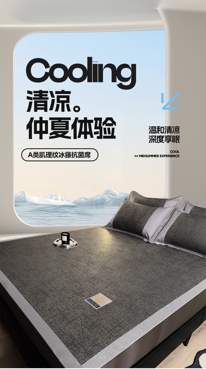 (总)全季家居 2023新款A类轻奢抗菌冰藤席,和意款-孔雀蓝,和意款-星际灰,和意款-薄荷绿,字母款-孔雀蓝,字母款-薄荷绿,字母款-星际灰