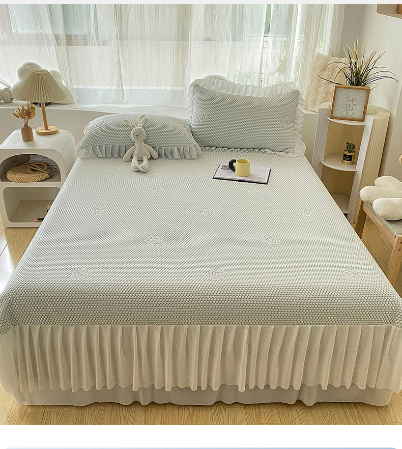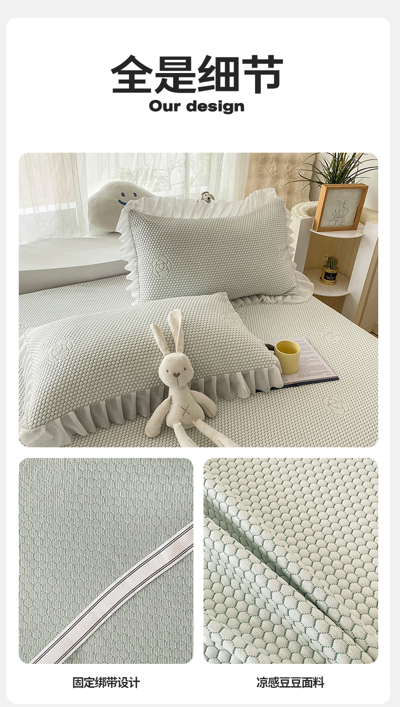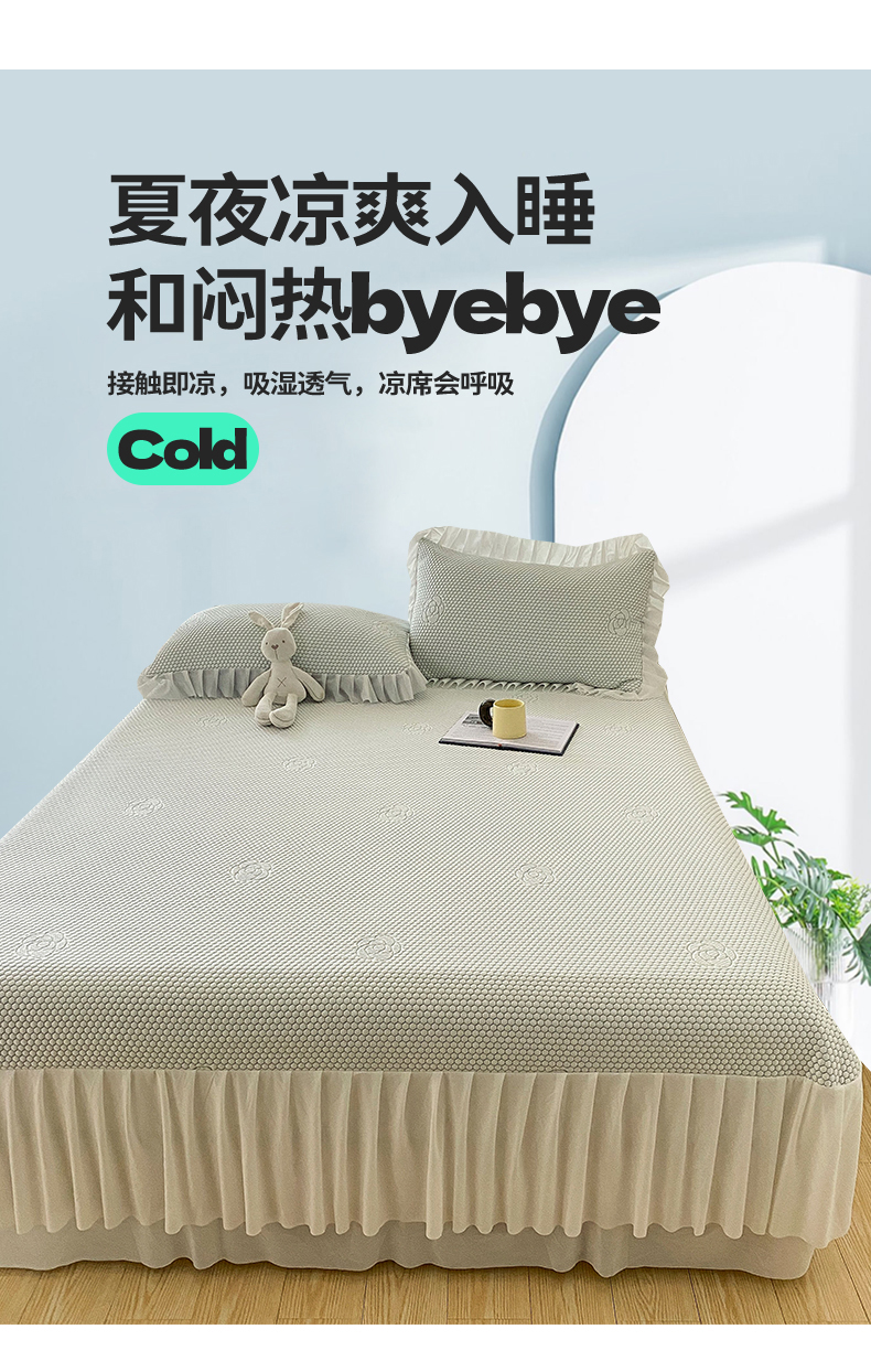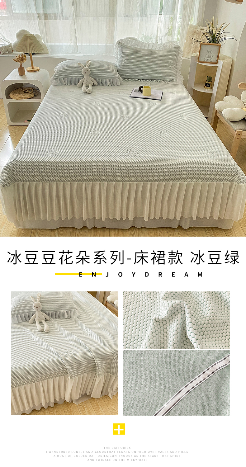 当前位置: 91家纺网 > 商品网购 > 床上用品 > 凉席 > 其他凉席 > 2024新款抗菌凉豆豆提花床裙款凉席-花朵系列 冰豆豆花朵系列-床裙款 冰豆绿
