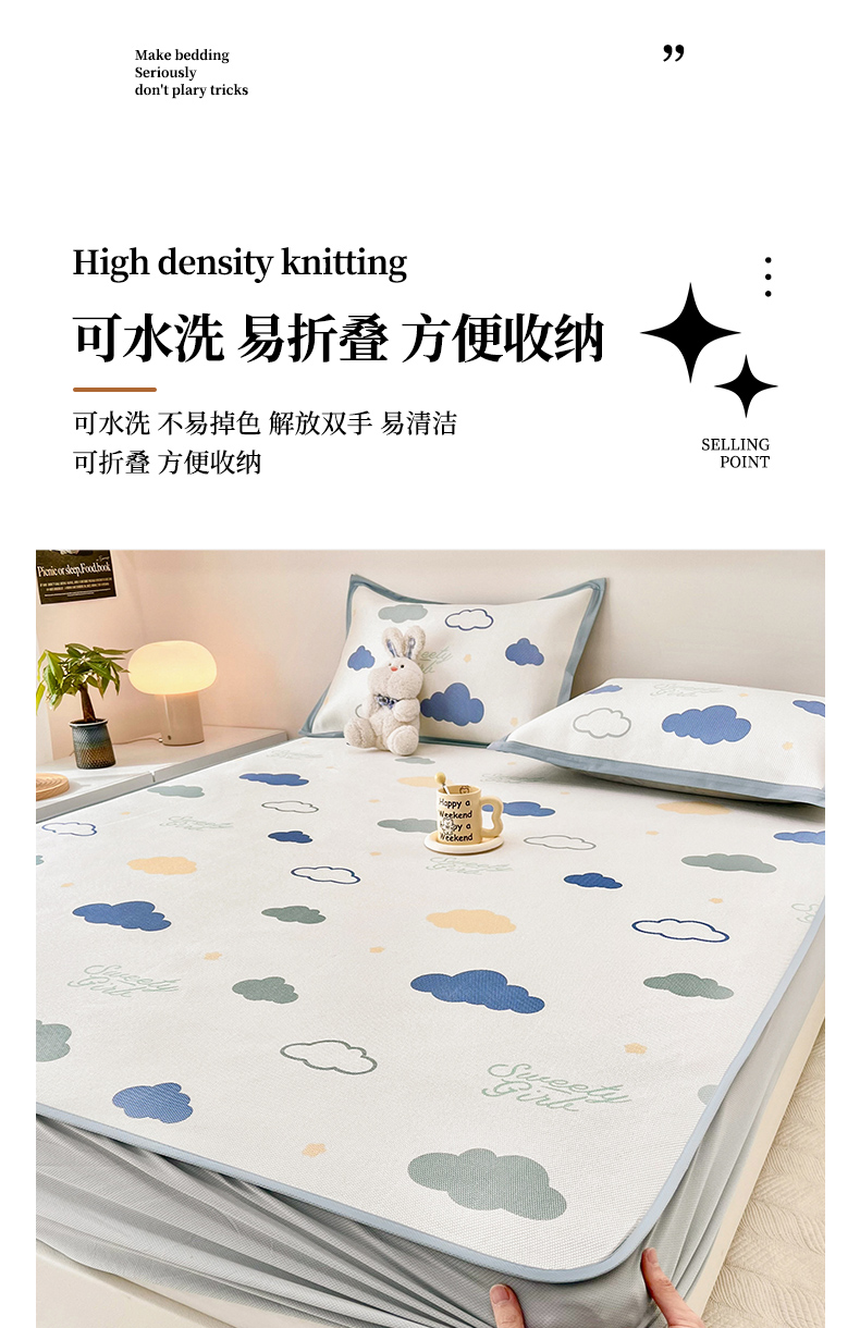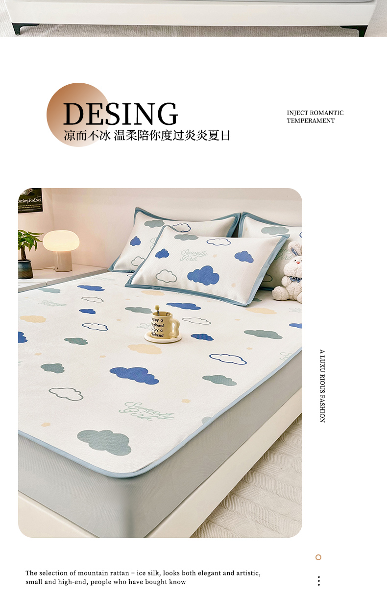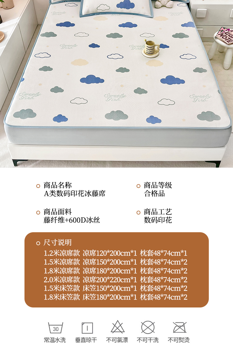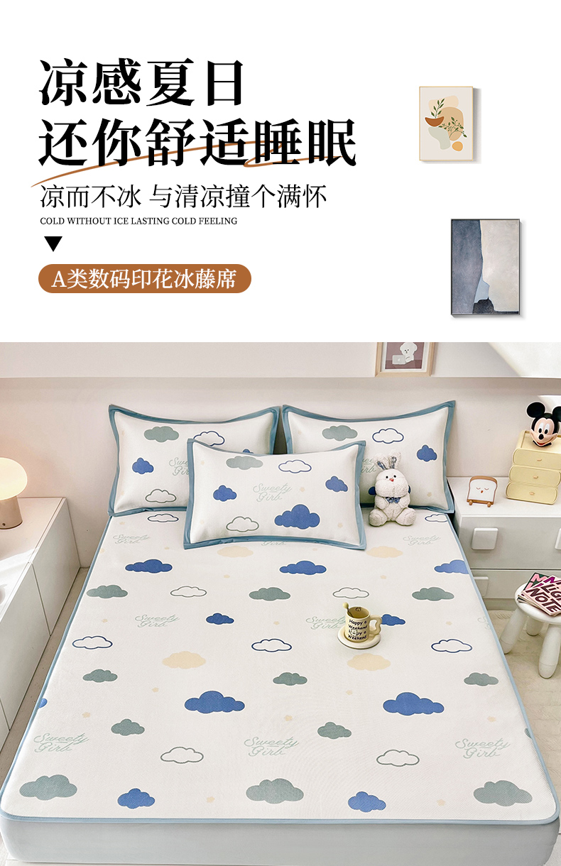 当前位置: 91家纺网 > 商品网购 > 床上用品 > 凉席 > 藤席 > 全季家居 2024新款5A抗菌小清新数码印花冰藤席 云朵(床笠款)