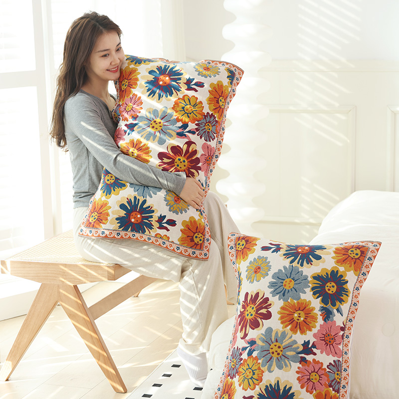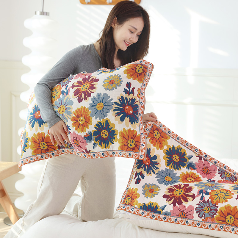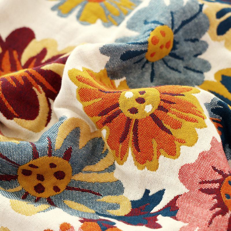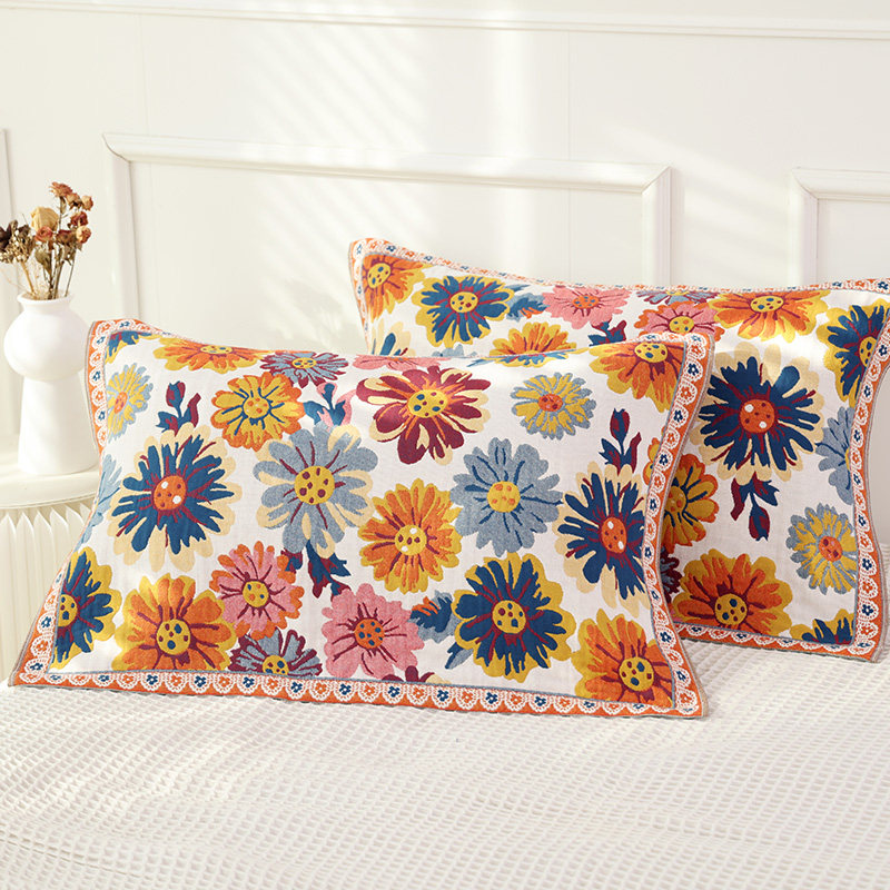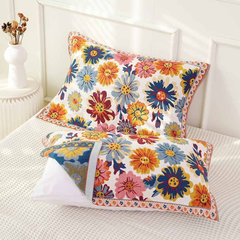 • 91家纺网 家纺一手货源 找家纺 朴尔毛巾被2024新款彩棉国潮风全棉六层纱布枕巾 繁花朵朵-枕巾52*78cm
