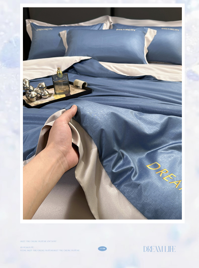(总)古吉梦 2024新款水洗真丝提花四件套--迪梦 ,宾利蓝+山灰,豆沙+山灰,高级灰+奶茶,海青+山灰,奶昔白+奶茶,山灰+中灰,天空蓝+海青,星空蓝+山灰,中灰+山灰