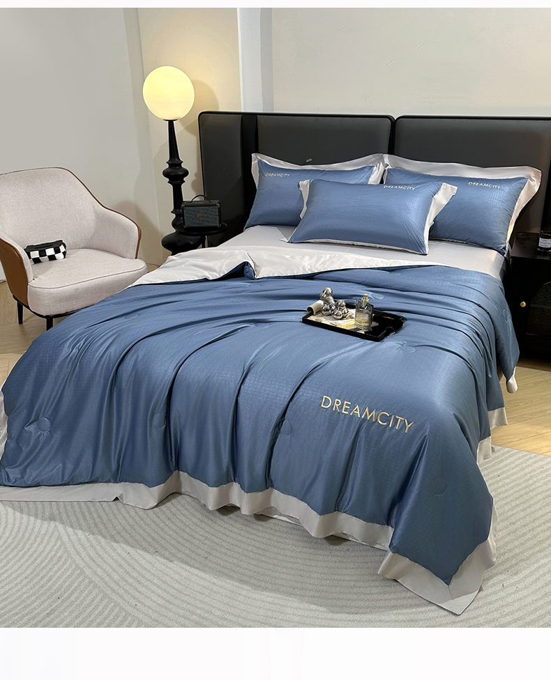 古吉梦 2024新款水洗真丝提花夏被--迪梦 宾利蓝+山灰
