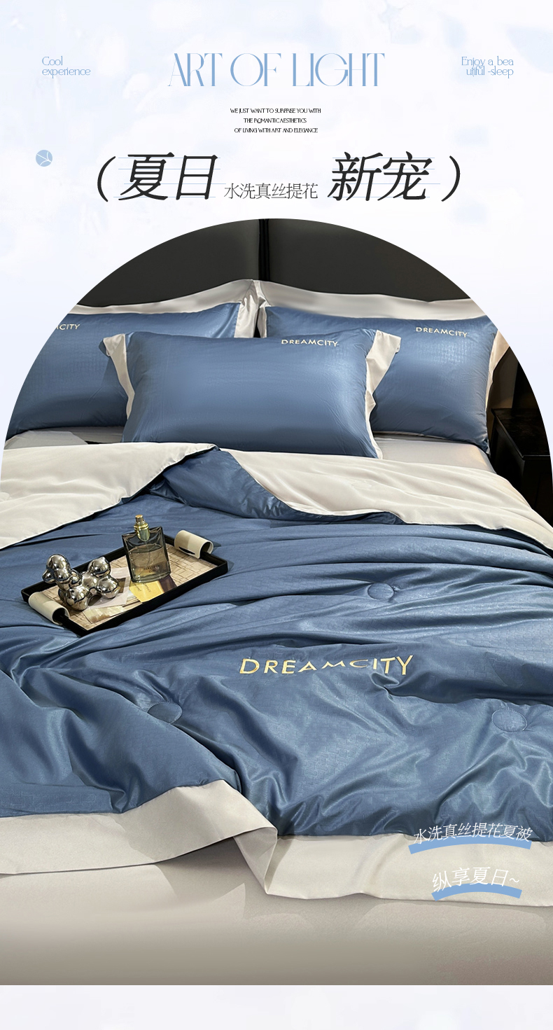 (总)古吉梦 2024新款水洗真丝提花夏被--迪梦,宾利蓝+山灰,高级灰+奶茶,海青+山灰,奶昔白+奶茶,浅豆沙+山灰,山灰+中灰,天空蓝+海青,星空蓝+山灰,中灰+山灰