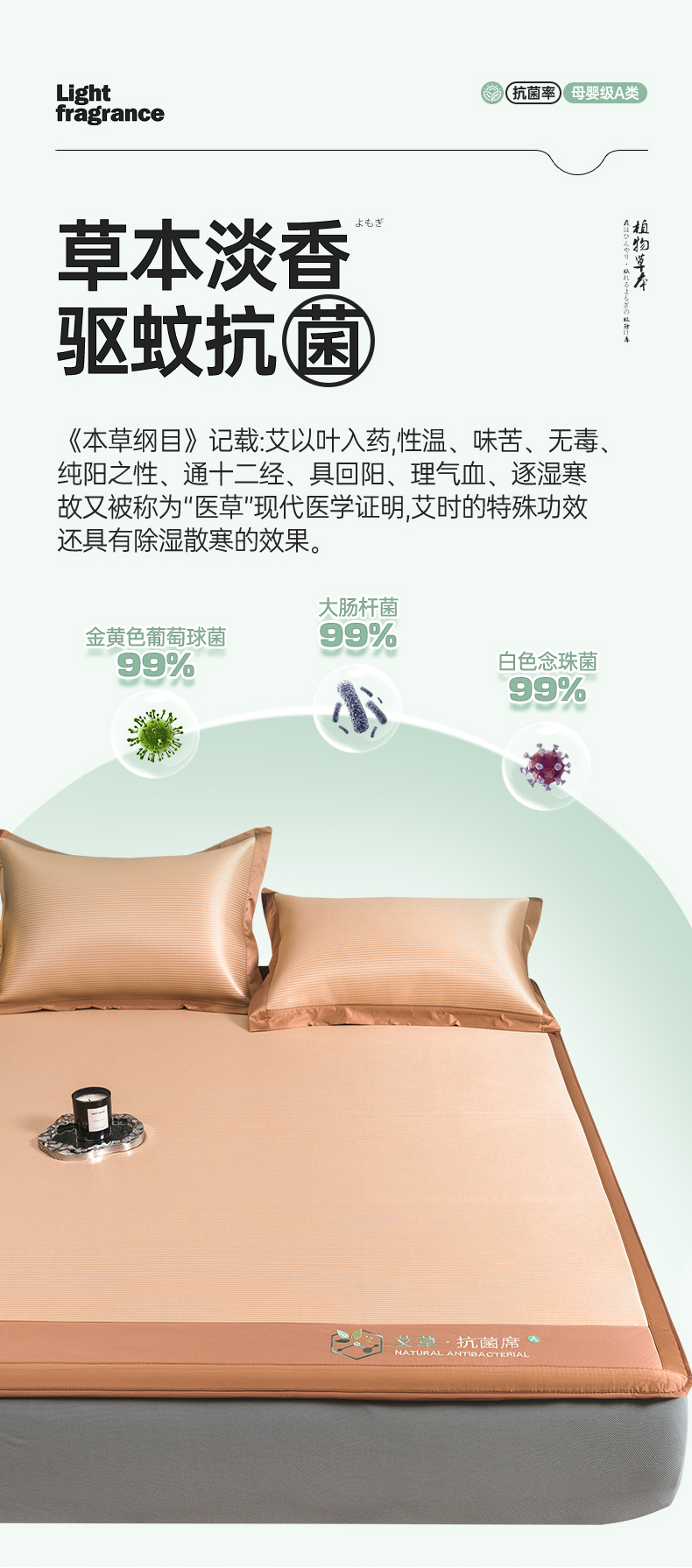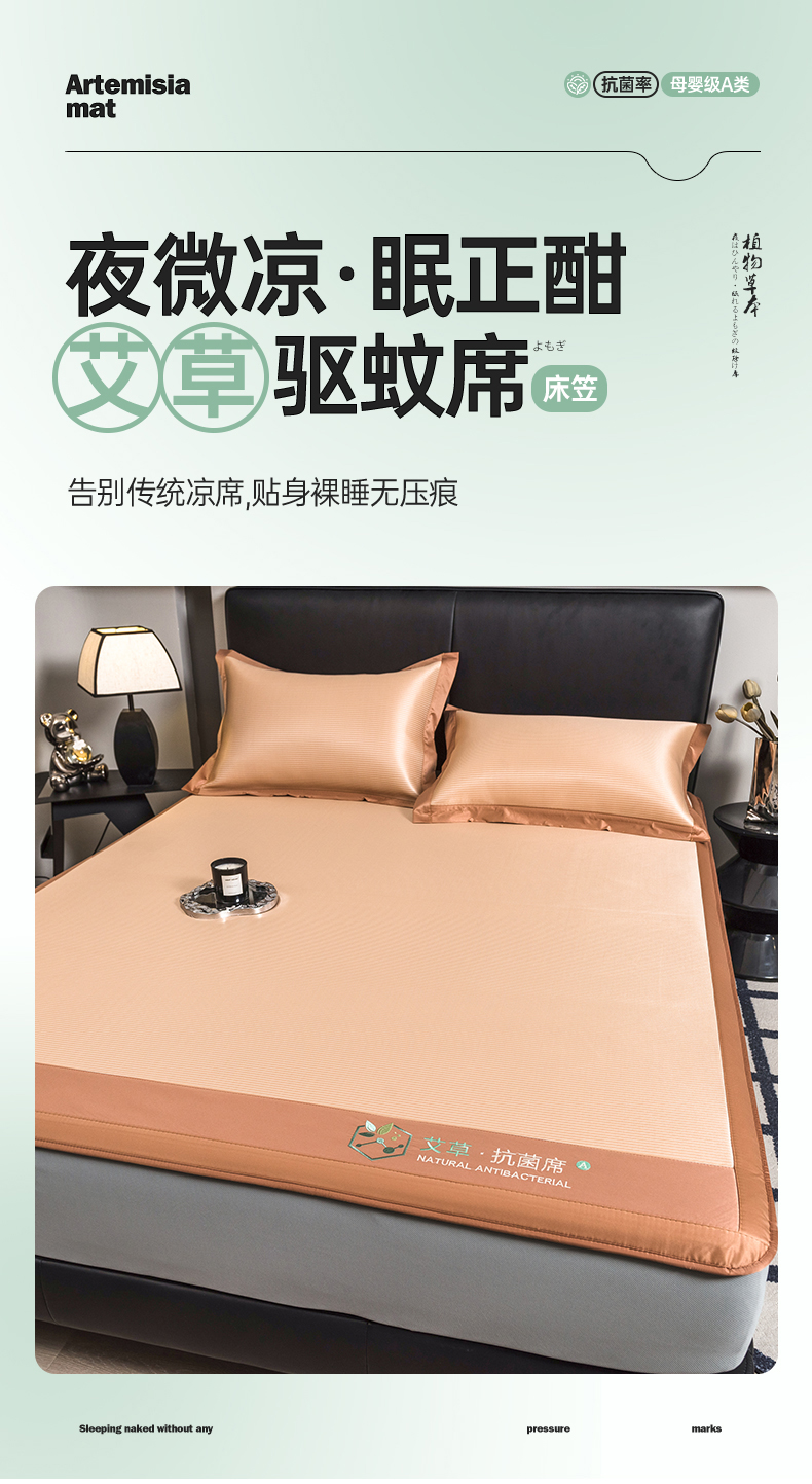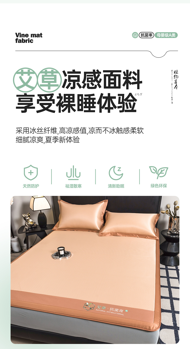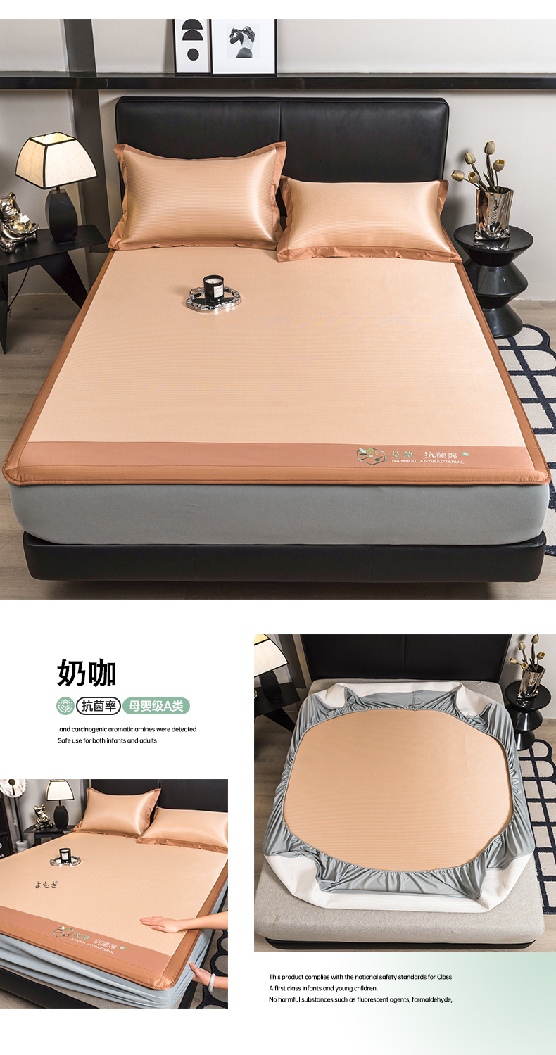 商品名称:全季2024新款5A加厚加密艾草碳光席冰丝席-床笠款 奶咖