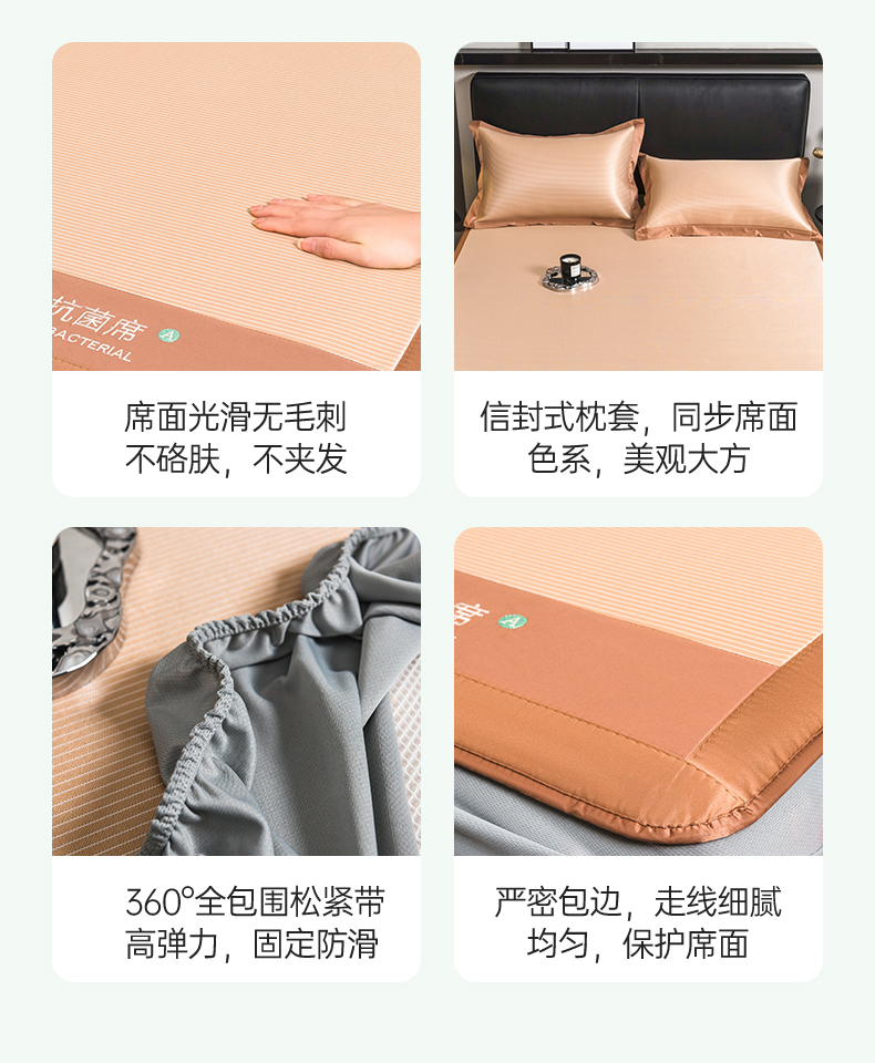 (总)全季家居 2025新款A类抗菌防螨幸运星系列冰藤席凉席席子,金咖 床席,水绿 床席,银灰 床席,金咖 床笠,水绿 床笠,银灰 床笠