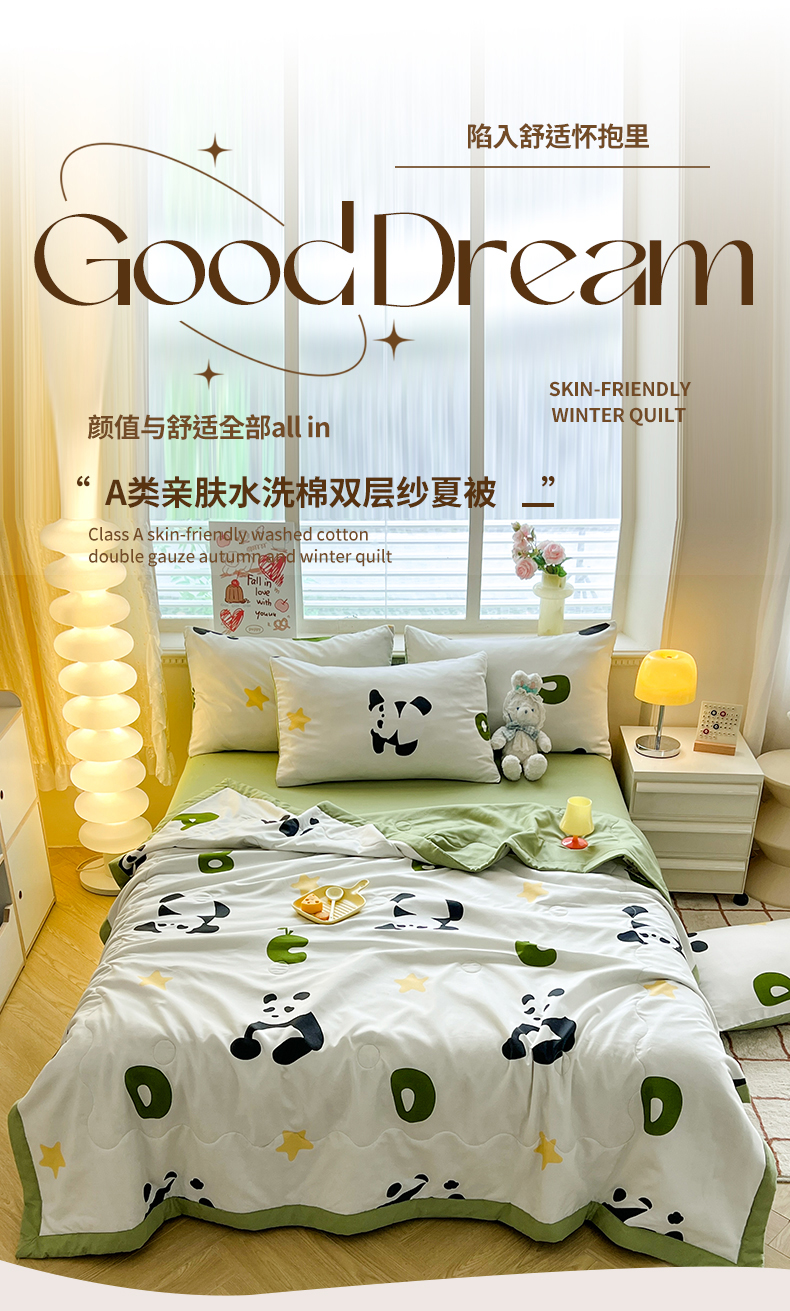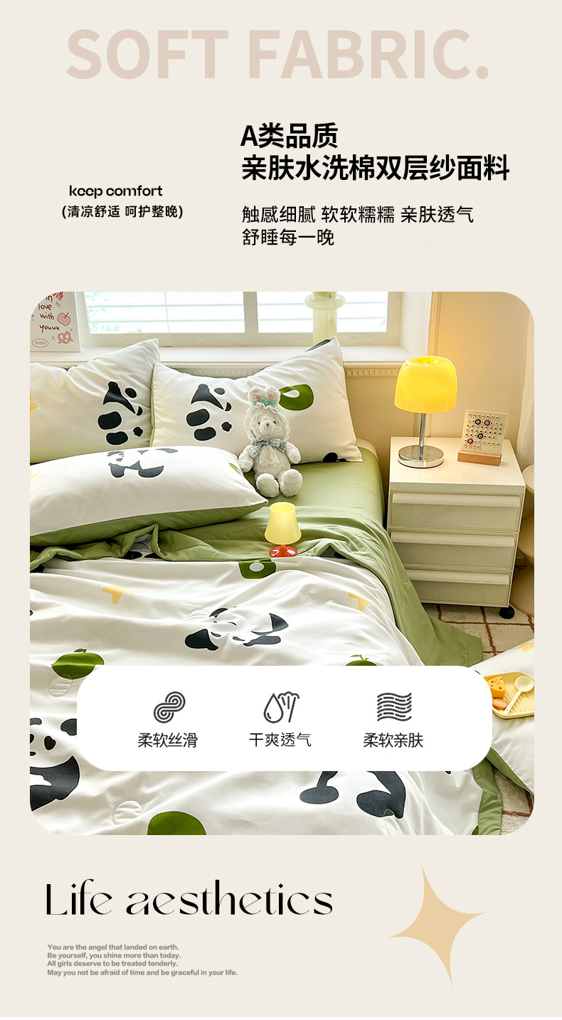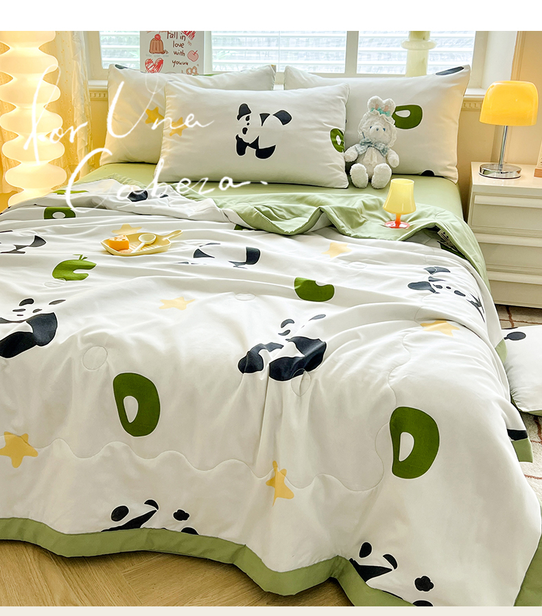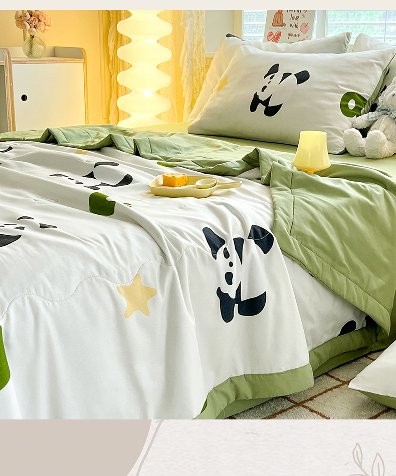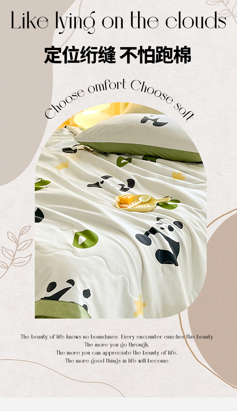 • 91家纺网 家纺一手货源 找家纺 妖妖家纺 2024新款超柔软糯水洗云朵棉印花夏被四件套 国宝梦境