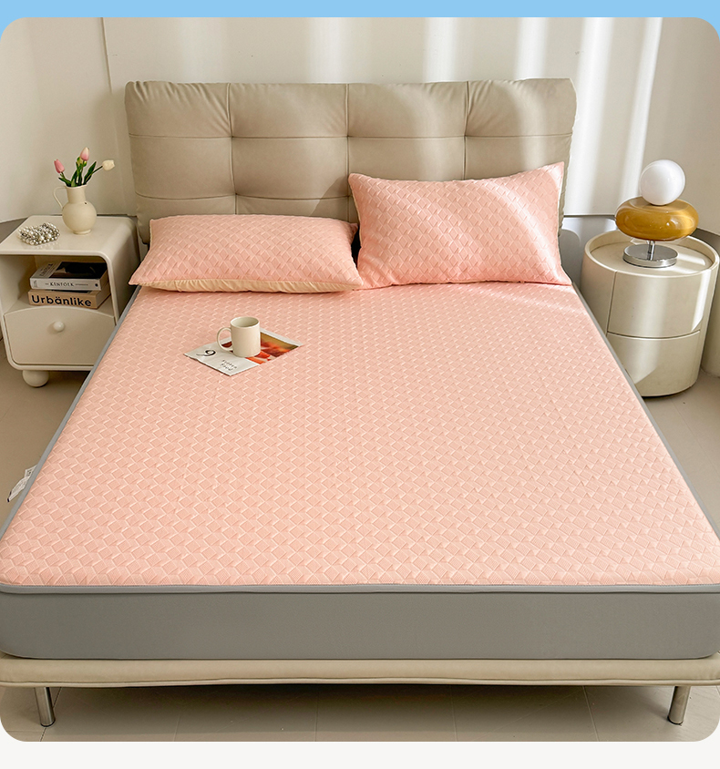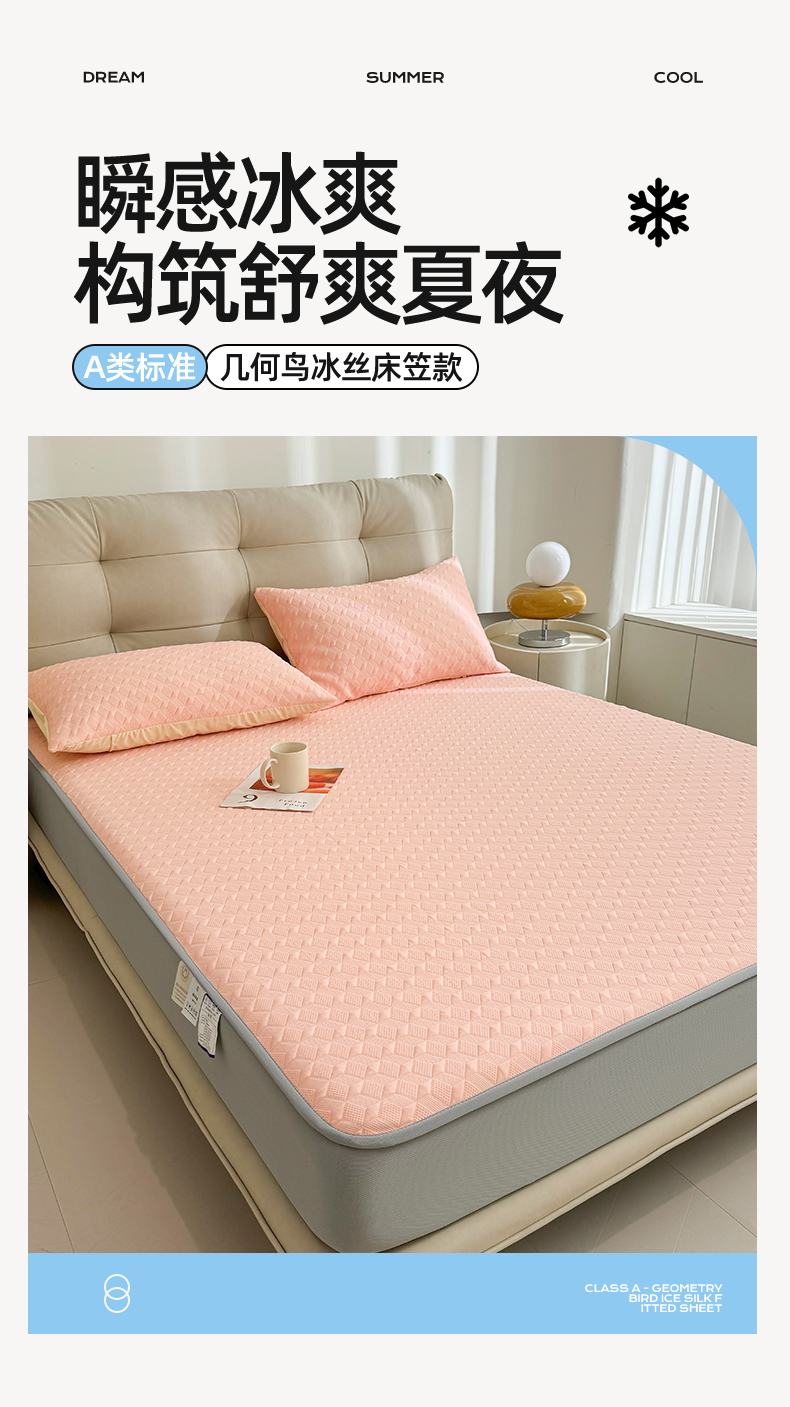 恒爱家纺 新款A类亲肤几何鸟冰丝床笠 几何-粉