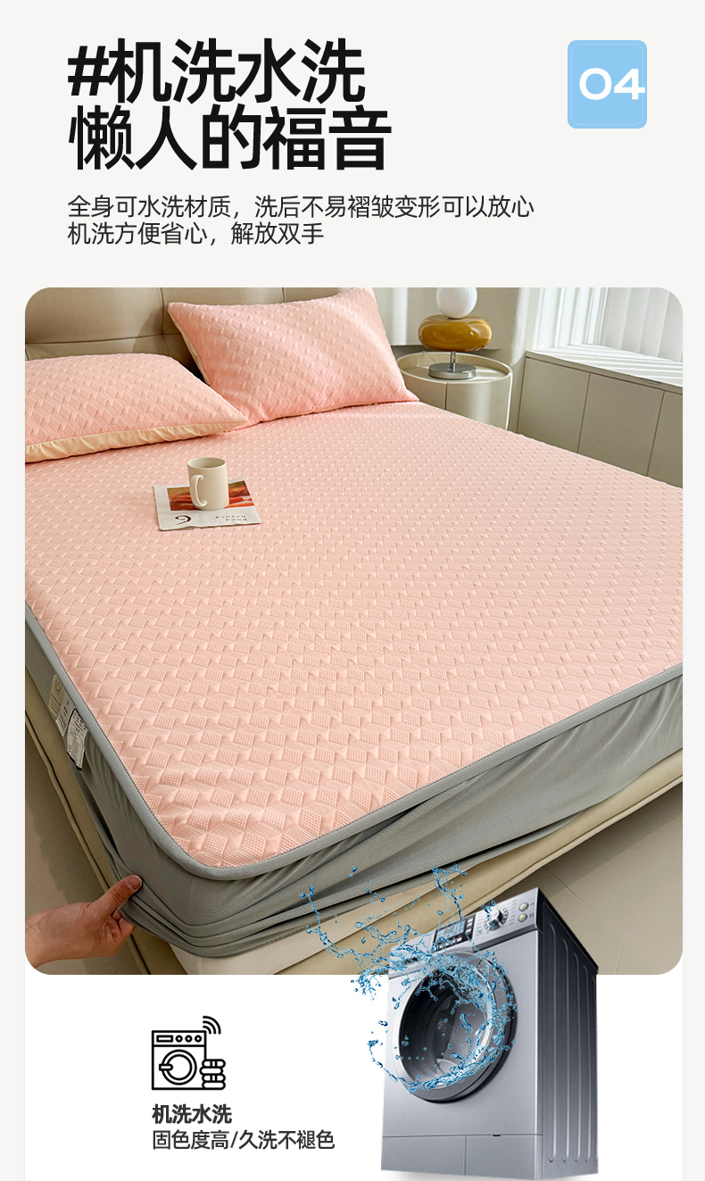 商品名称:恒爱家纺 新款A类亲肤几何鸟冰丝床笠 几何-粉