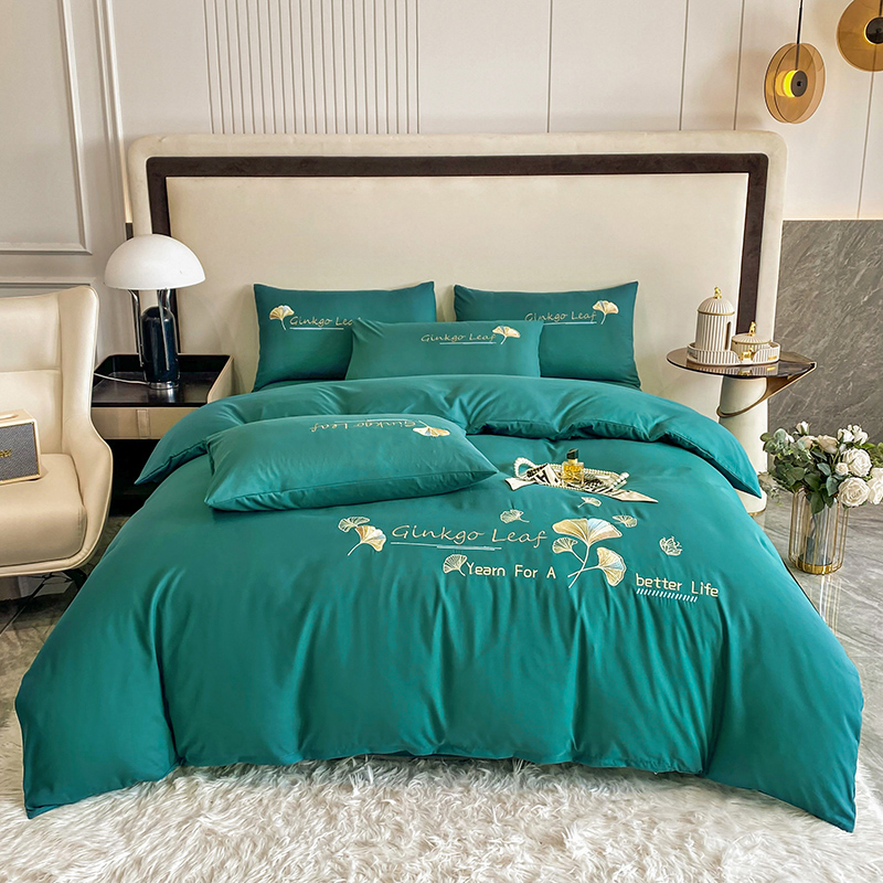 孟鑫 2025新款水洗磨毛刺绣绣花四件套-三生有杏系列 森林绿