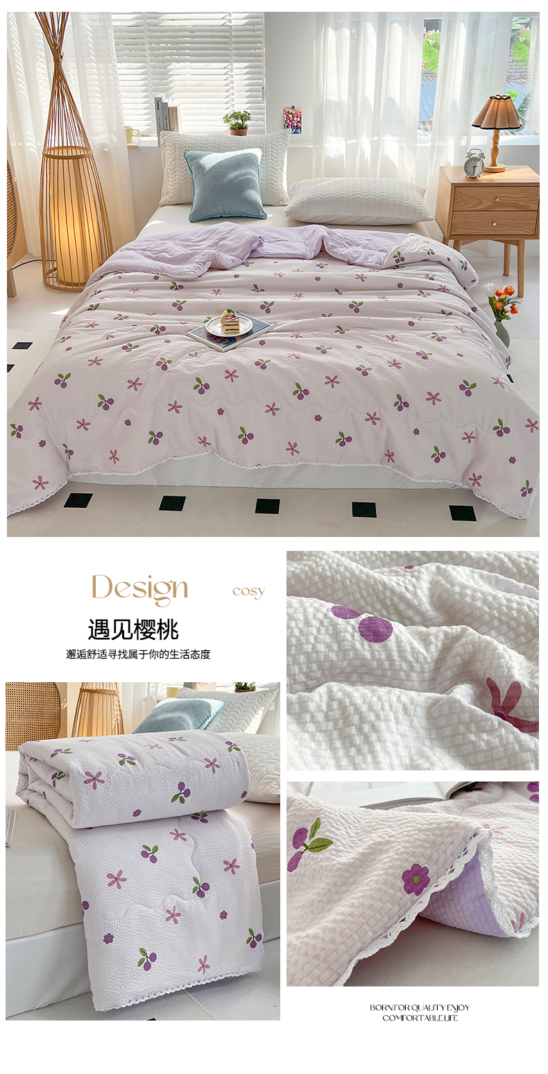 艺菲阁家纺 2024新款泡泡棉印花大豆夏被 遇见樱桃