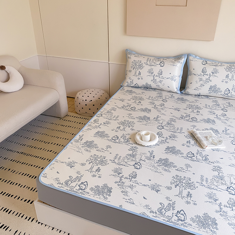 (总)三味舒屋 2025新款麦吉拉时尚印花冰藤凉席席子,麦吉拉 米 床席,麦吉拉 蓝 床席,麦吉拉蓝 床笠,麦吉拉米 床笠