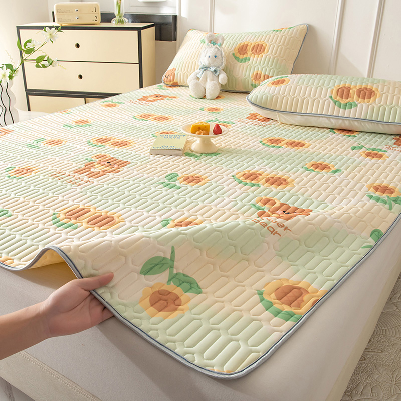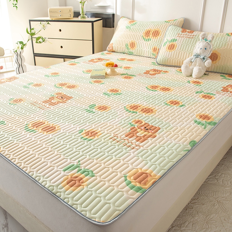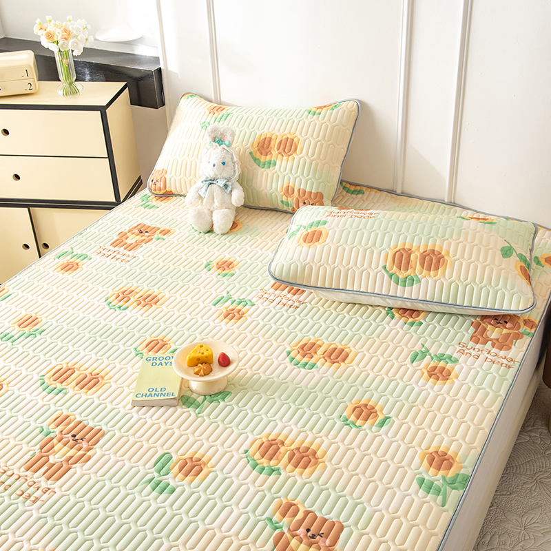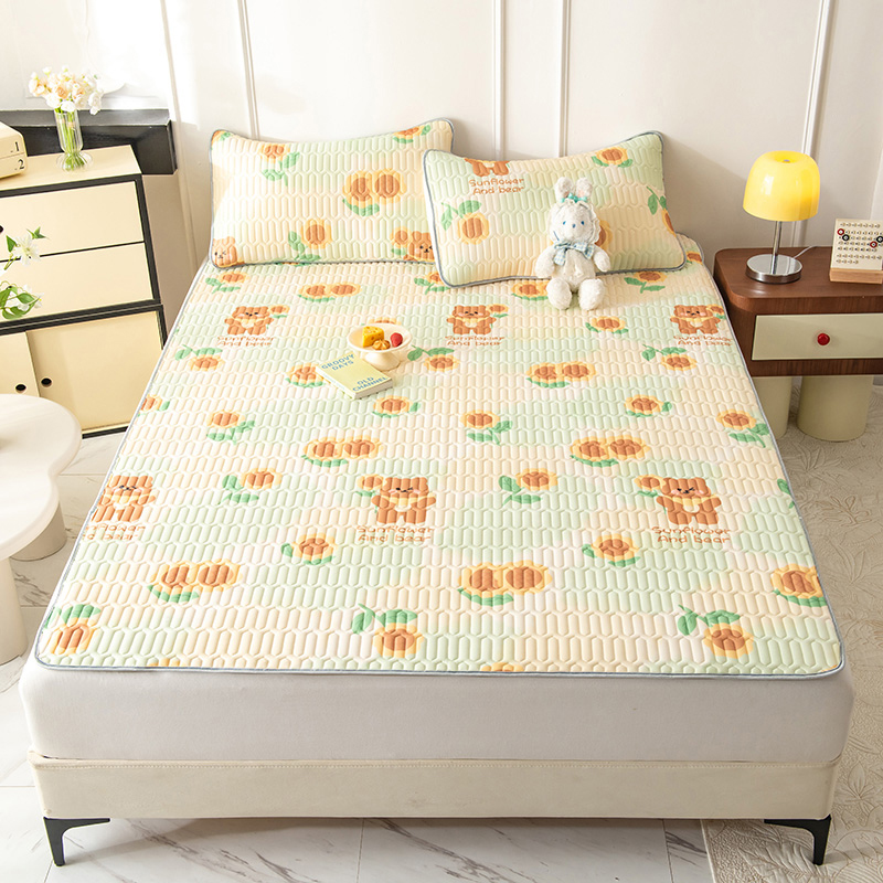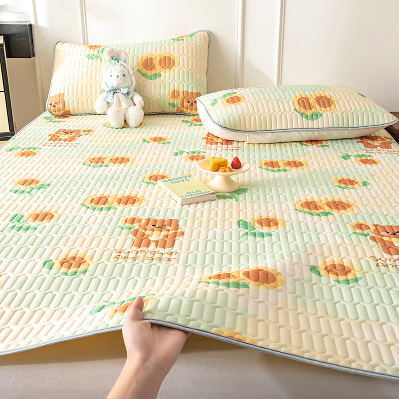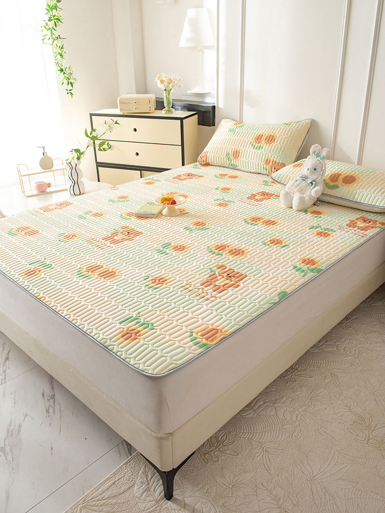 佳梦达 新款0.4厚度纯色凉感丝乳胶凉席三件套(风格二) 向阳熊熊