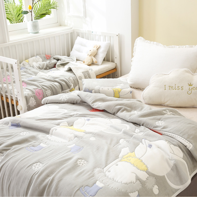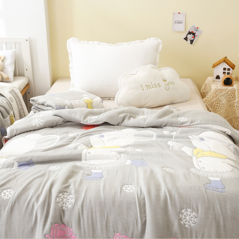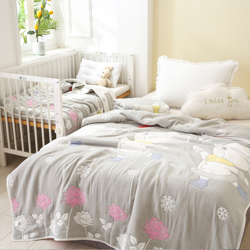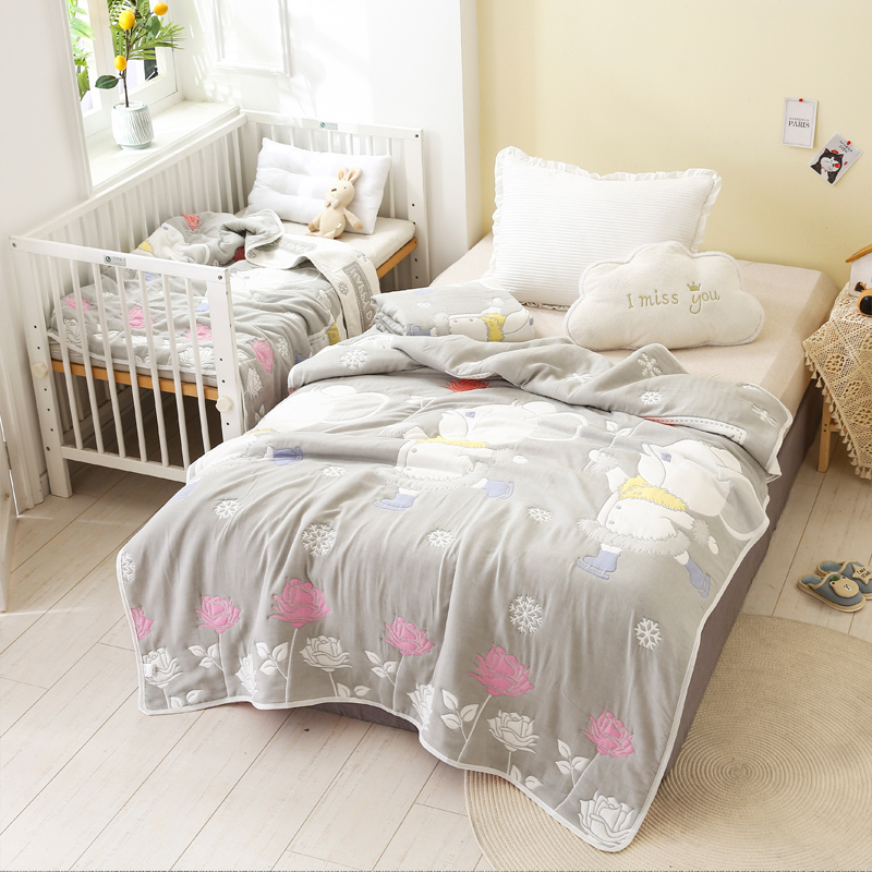 朴尔家纺-毛巾被 2024年全棉十层纱布加厚儿童盖被毛巾被 溜冰鼠灰