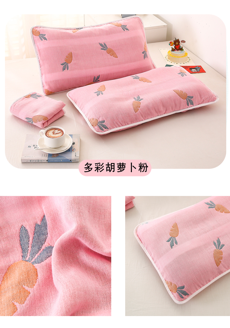 朴尔家纺-毛巾被 2024新款全棉卡通六层纱布儿童枕套 多彩胡萝卜粉