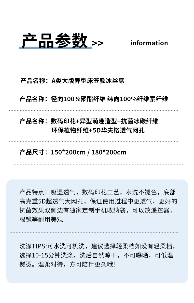 商品名称:昔可家纺 2024新款异形床笠款冰丝凉席 大斜眼怪怪